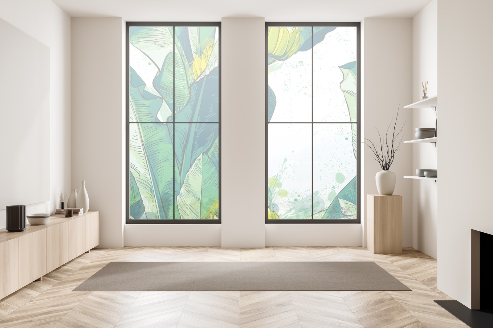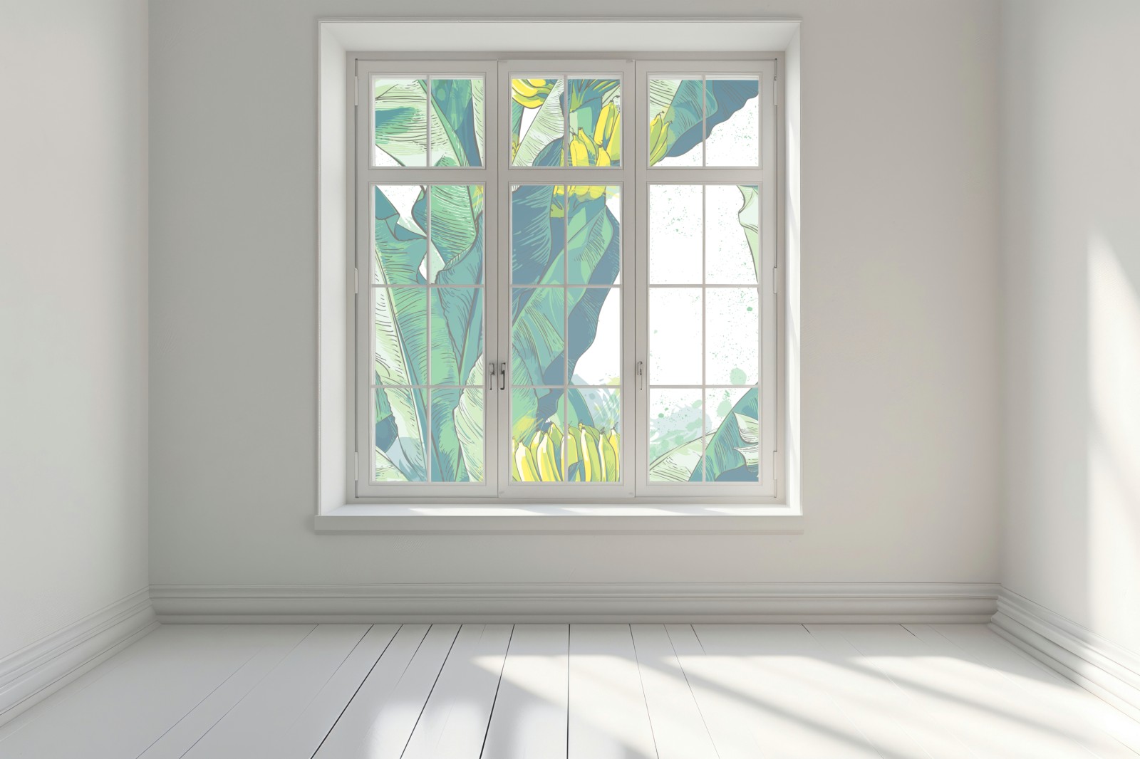 lebhafte tropische illustration von bananenblättern und gelben bananen, die natürliche frische und energie in jeden raum bringt.