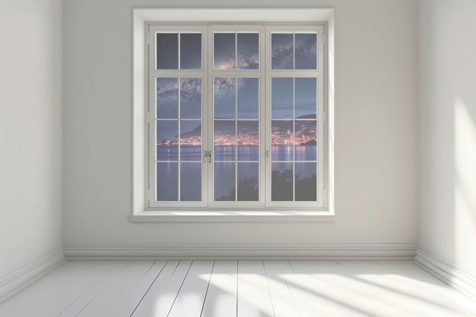 Fensteraufkleber küstenstadt unter der milchstraße