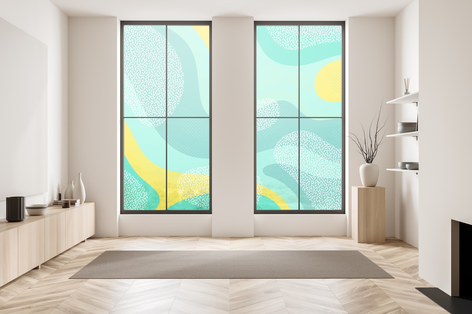 Fensteraufkleber türkis-gelbes abstraktes muster