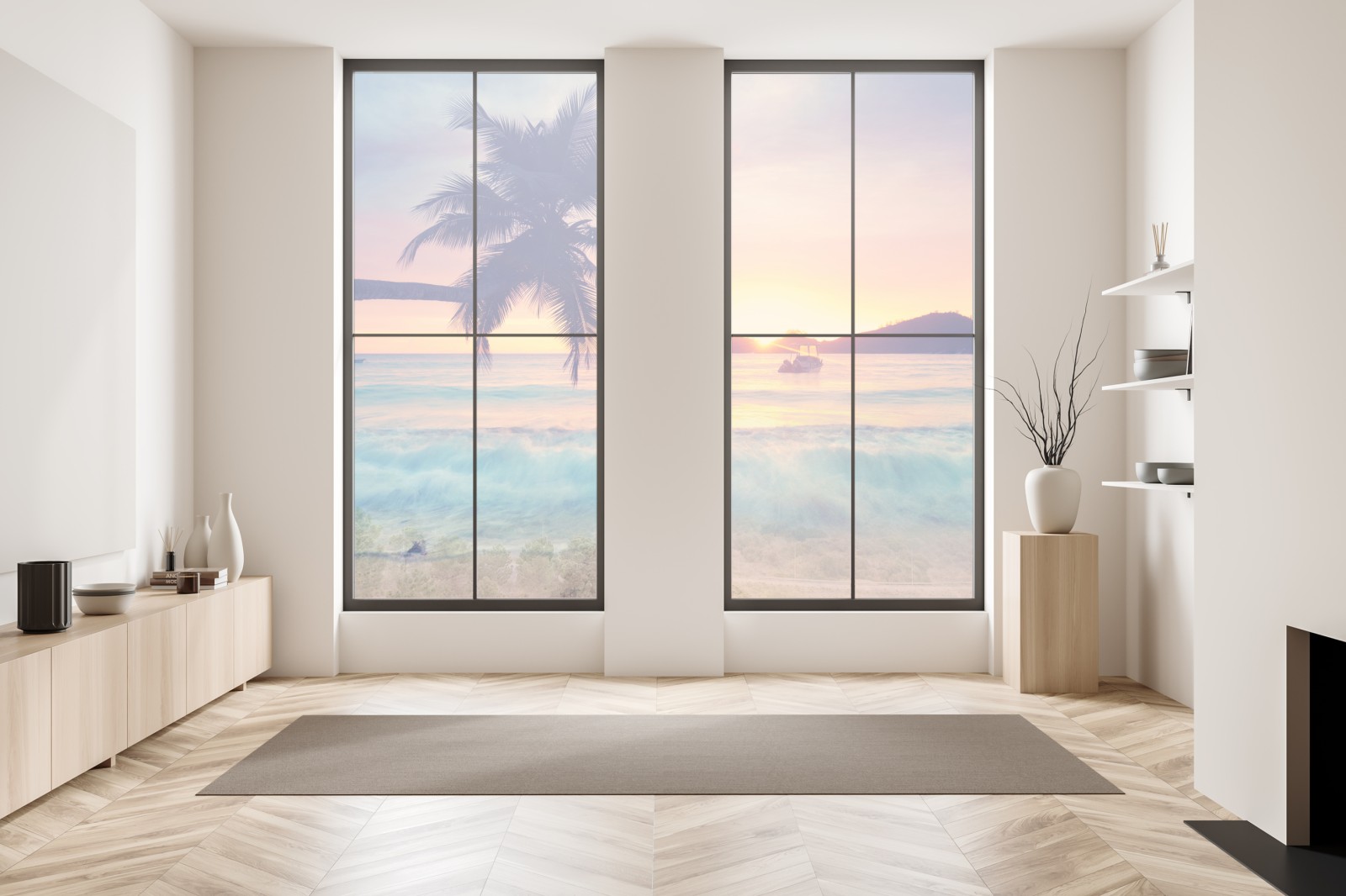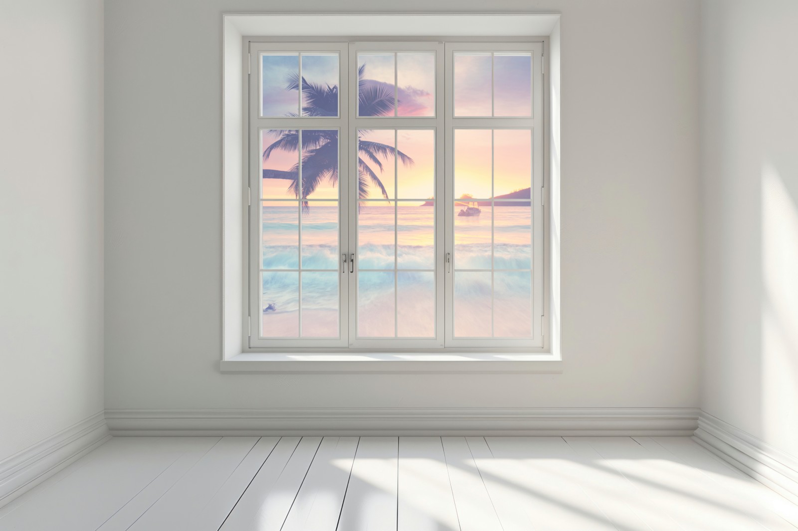 Fensteraufkleber tropischer pastellsonnenuntergang am meer