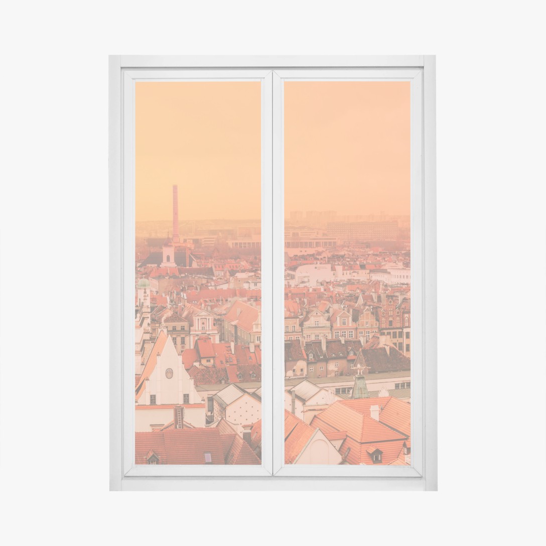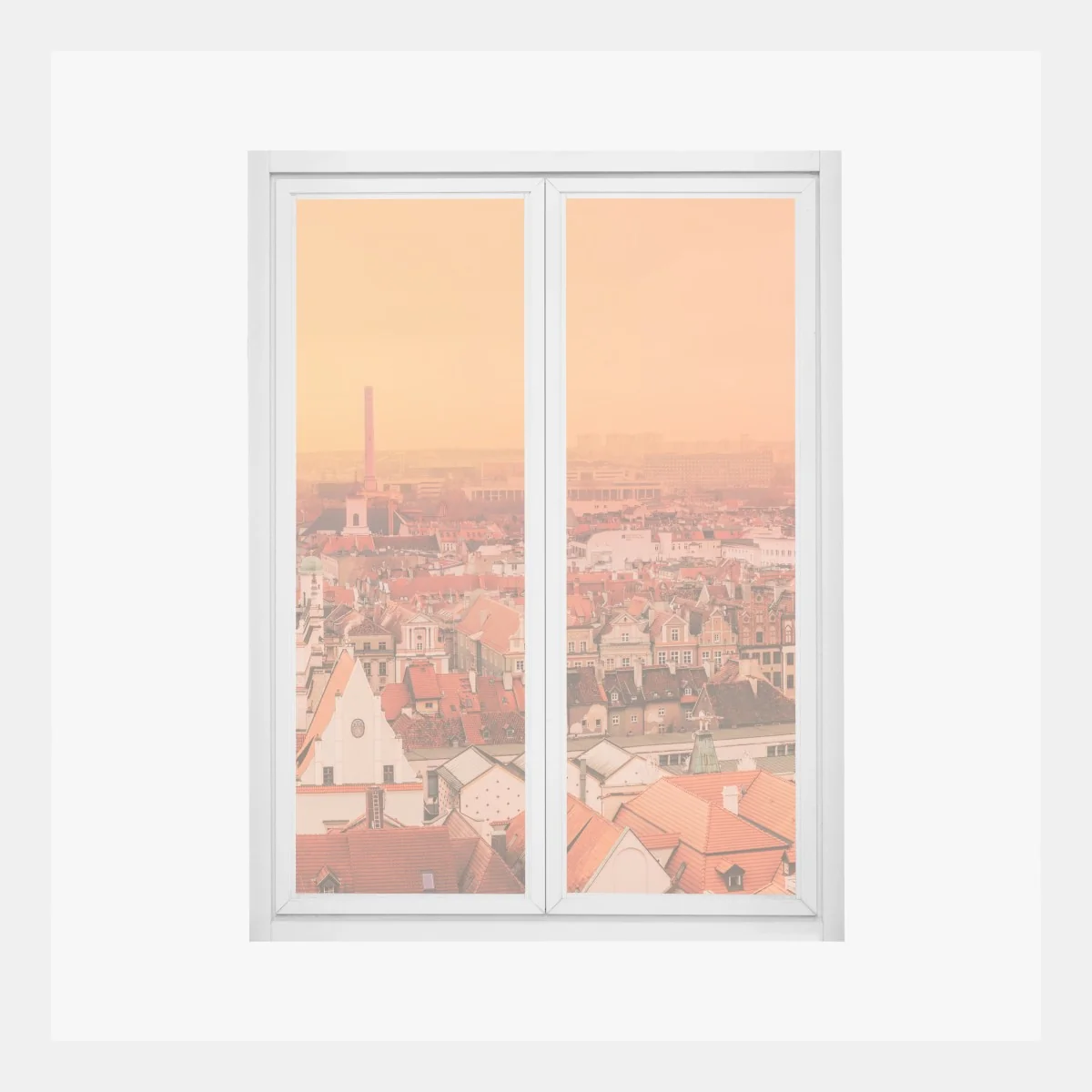 Fensteraufkleber Warmer sonnenuntergang über historischen stadtdächern