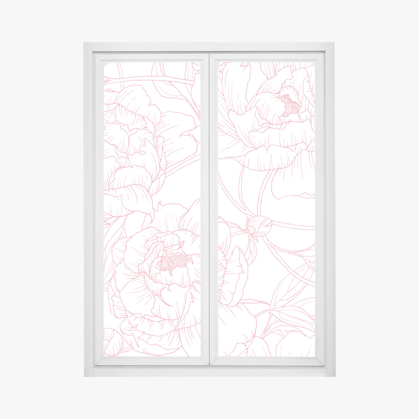 Fensteraufkleber zartes rosa paeonien-line-art-muster