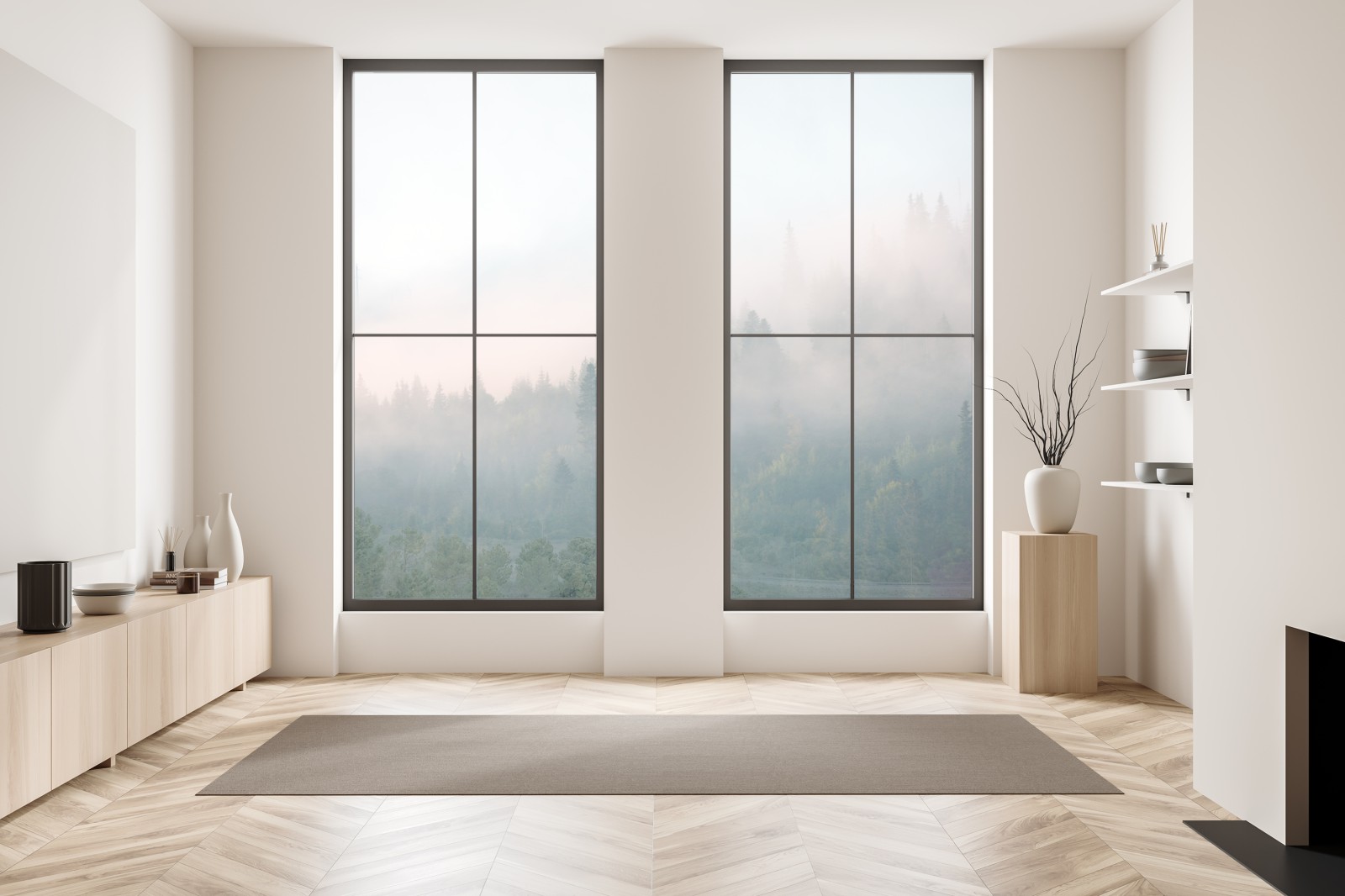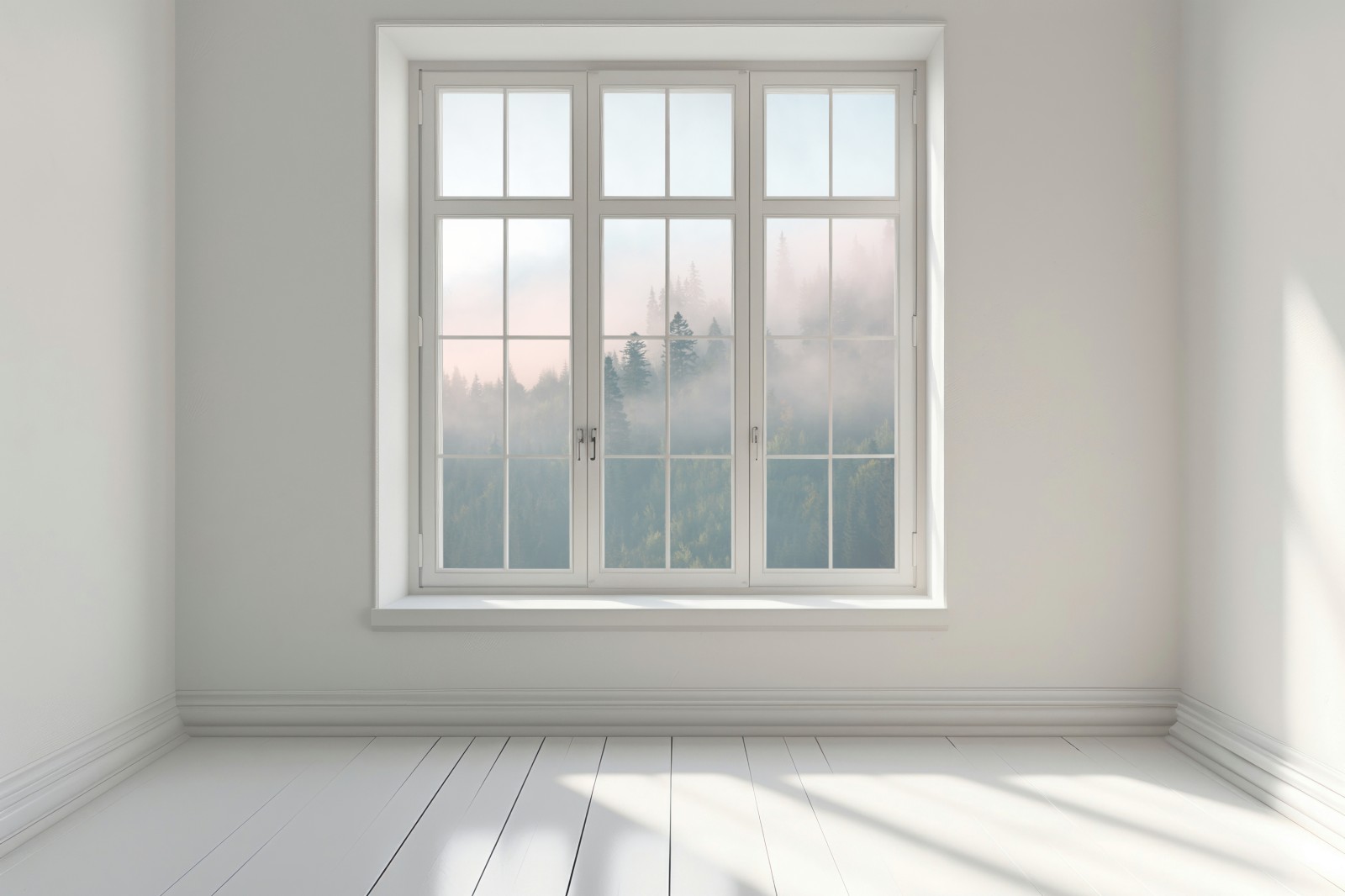 Morgennebel zieht durch den Tannenwald und schafft eine ruhige, traumhafte Landschaft, die natürliches Flair in Ihr Zuhause bringt.