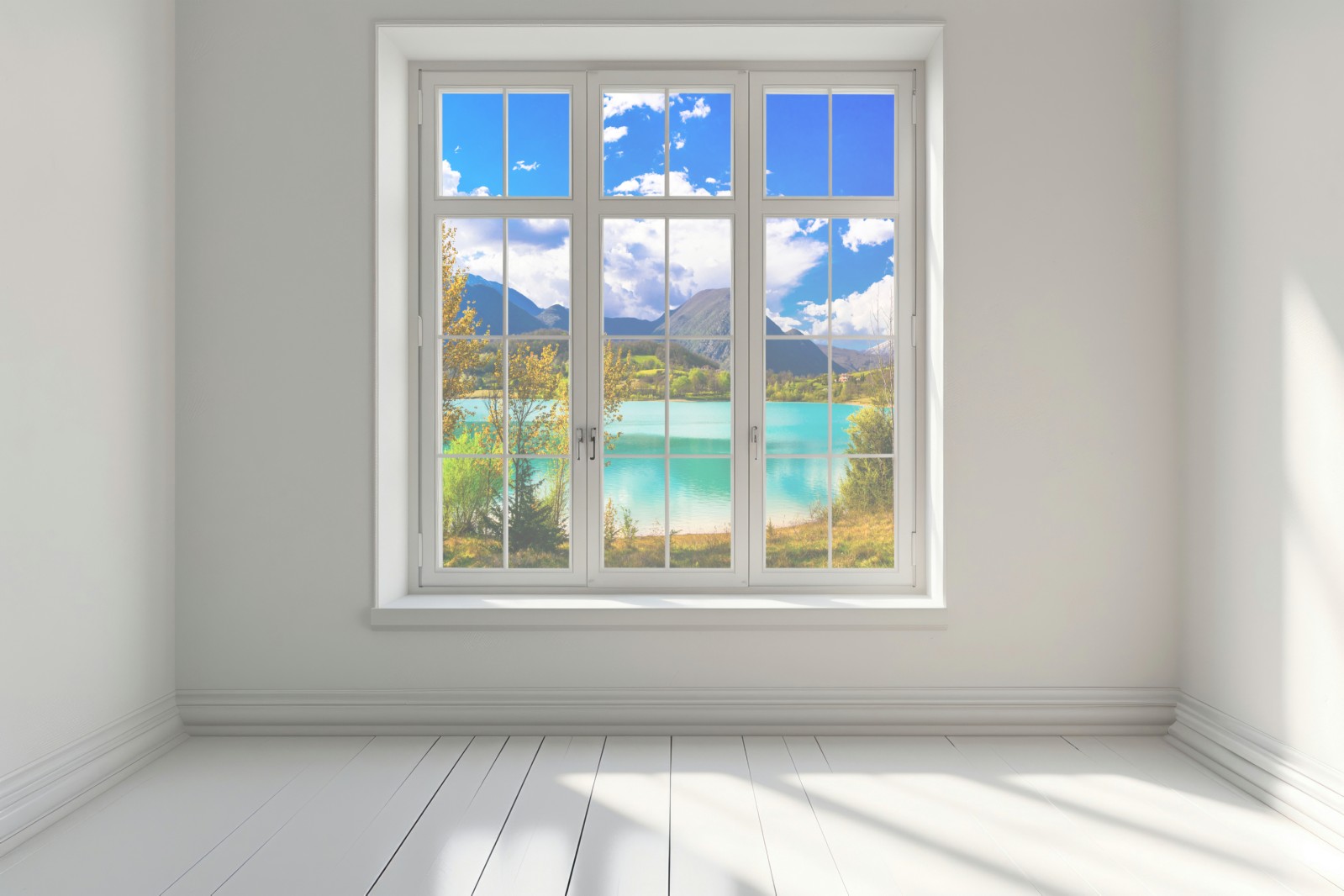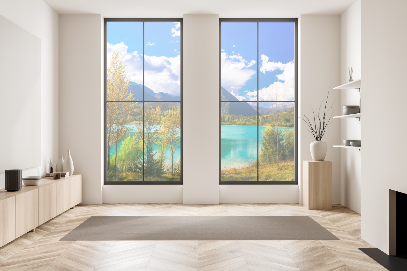 lebendiger türkissee eingerahmt von goldenen bäumen und dramatischen bergen, ideal um natürliche ruhe in ihr zuhause zu bringen.