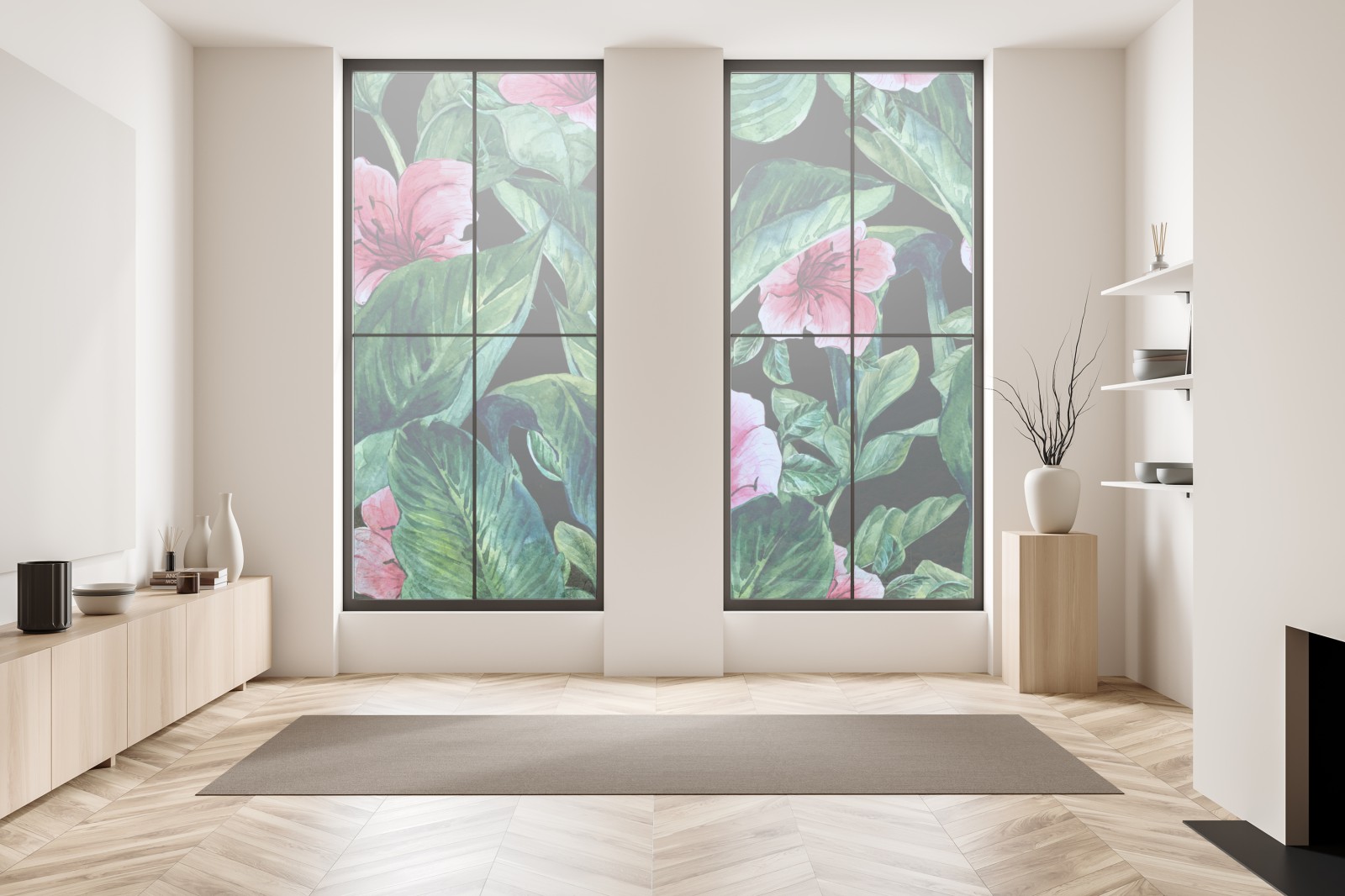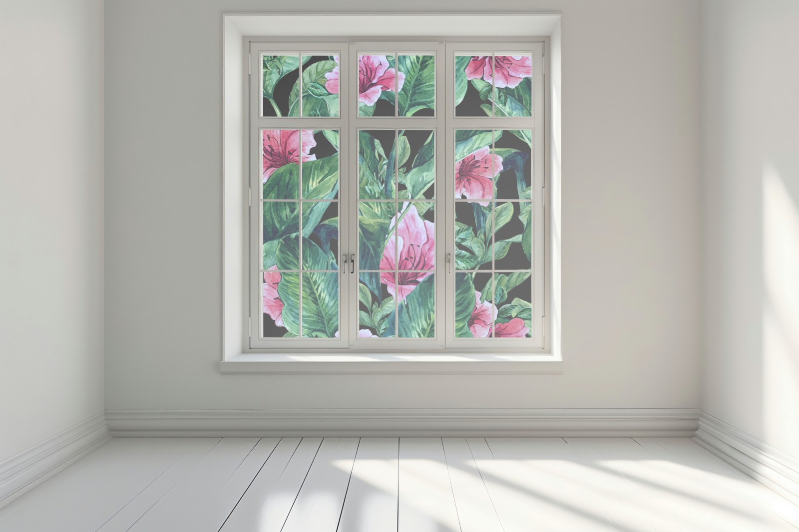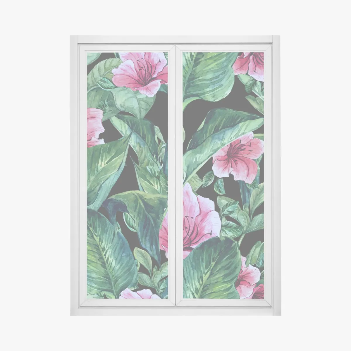 Fensteraufkleber rosa aquarellblumen auf schwarzem hintergrund