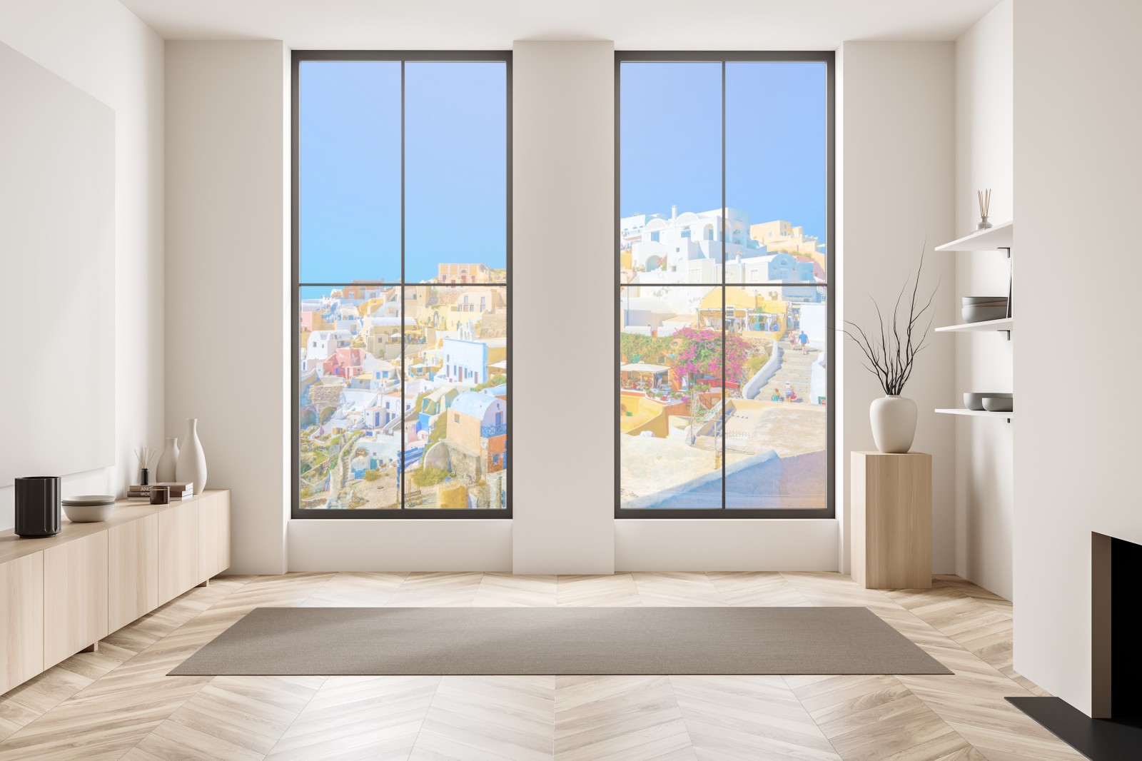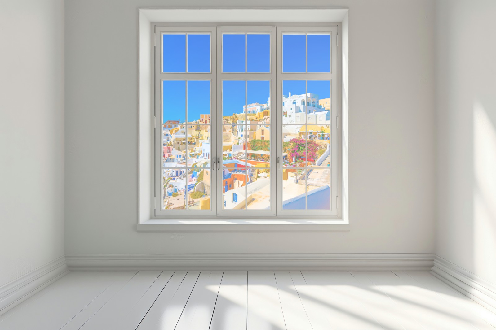Fensteraufkleber sonniges Dorf Oia, Santorini