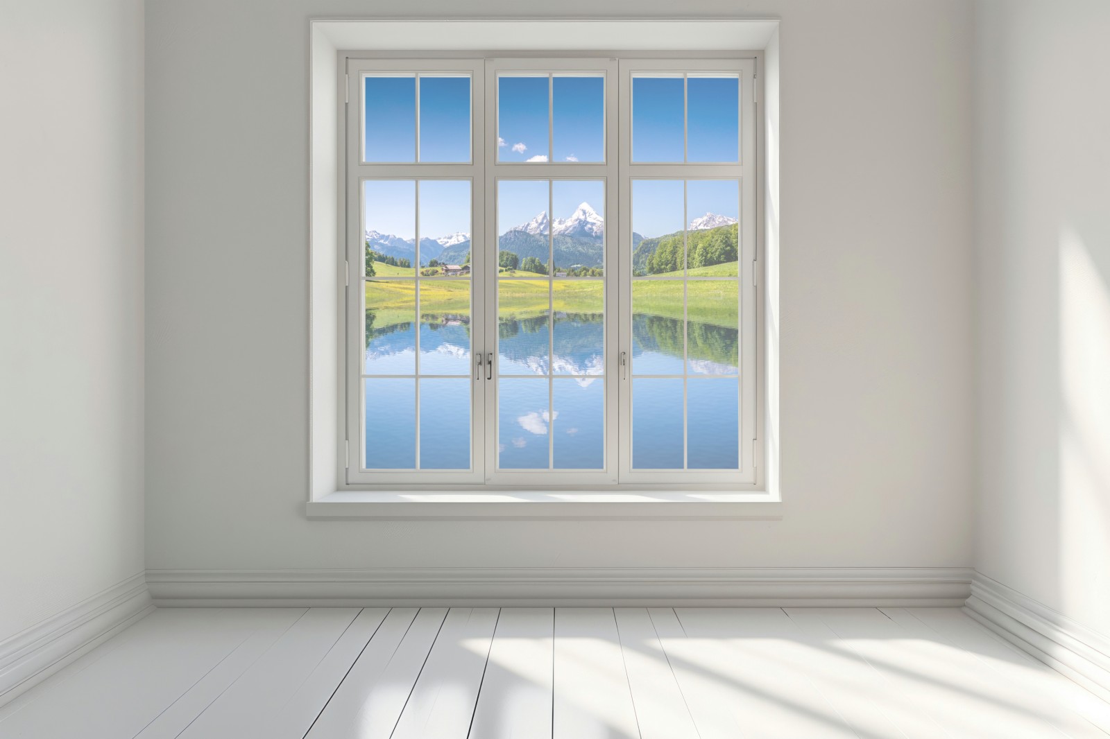 Fensteraufkleber alpenpanorama mit spiegelung im see