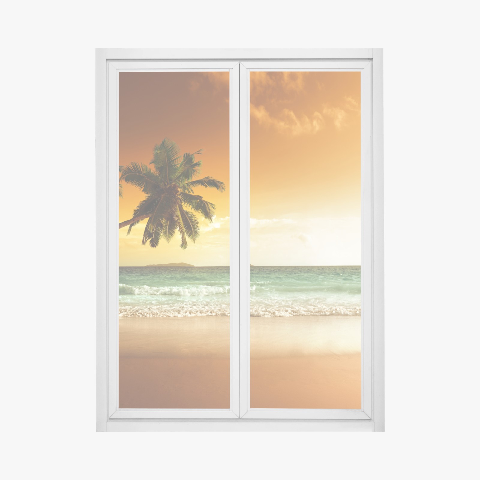 Fensteraufkleber Karibischer sonnenuntergang am strand mit palmen