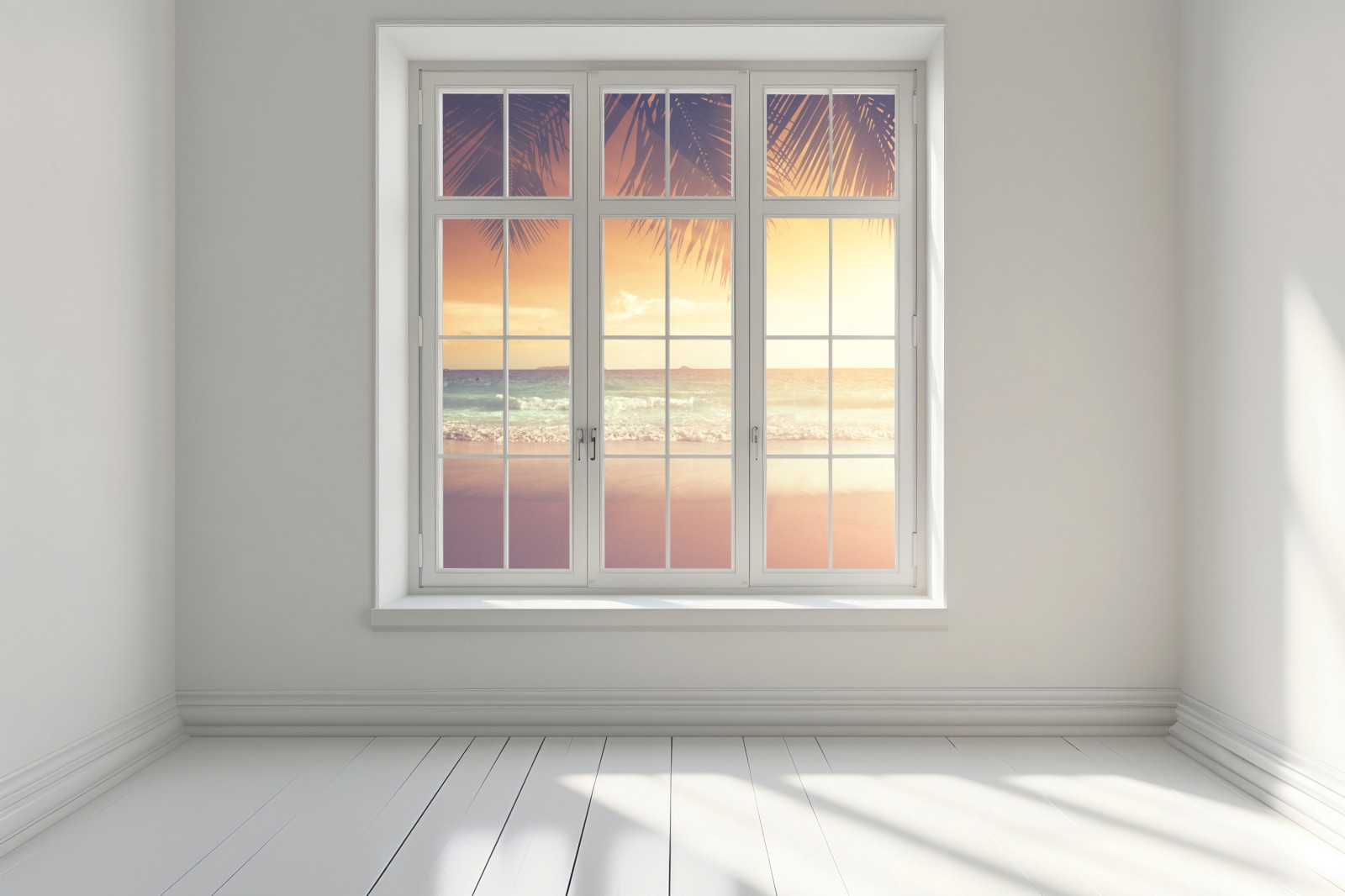 Fensteraufkleber strand bei sonnenuntergang in der Karibik
