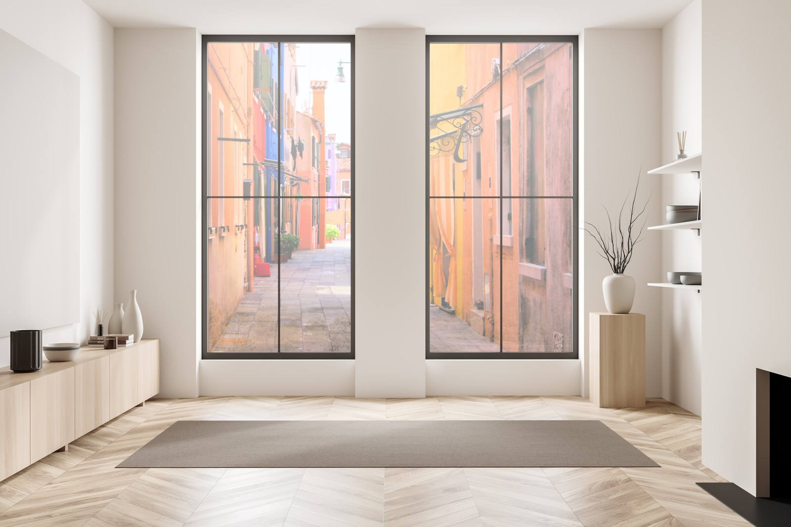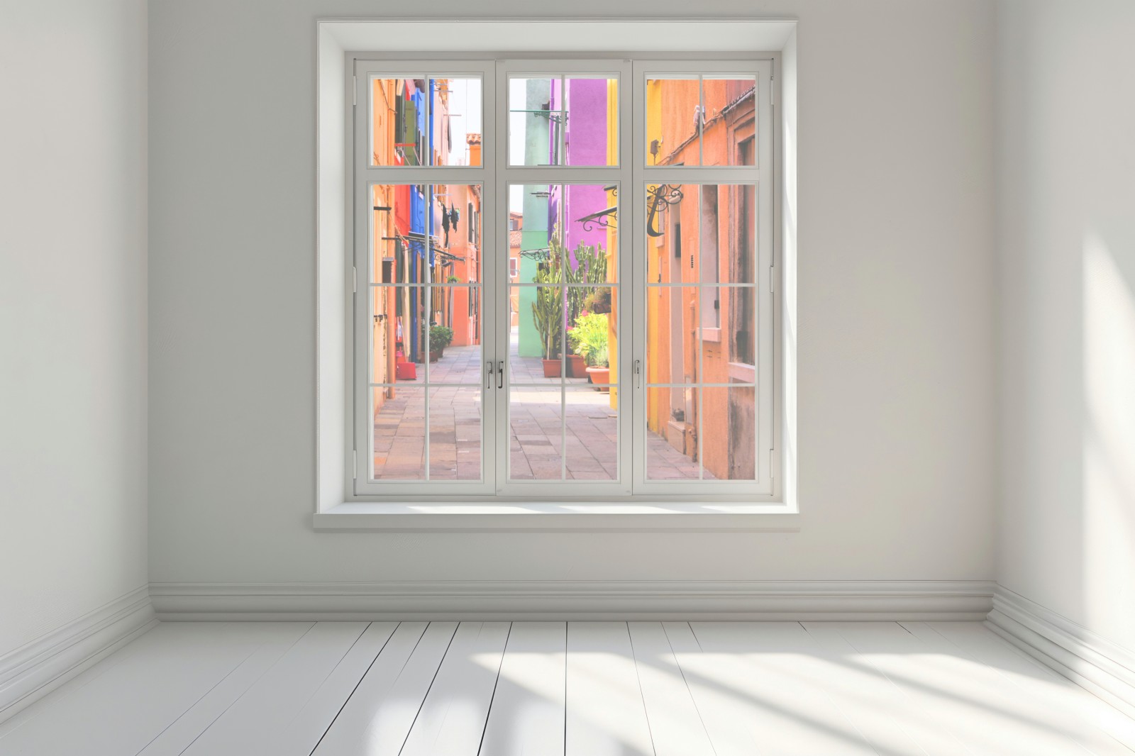 Fensteraufkleber bunte mediterrane gasse
