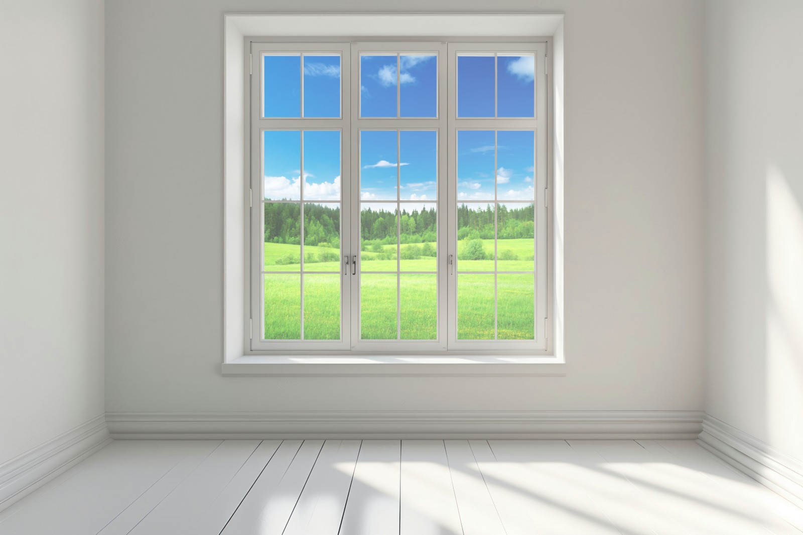 Fensteraufkleber frühlingswiese unter blauem himmel