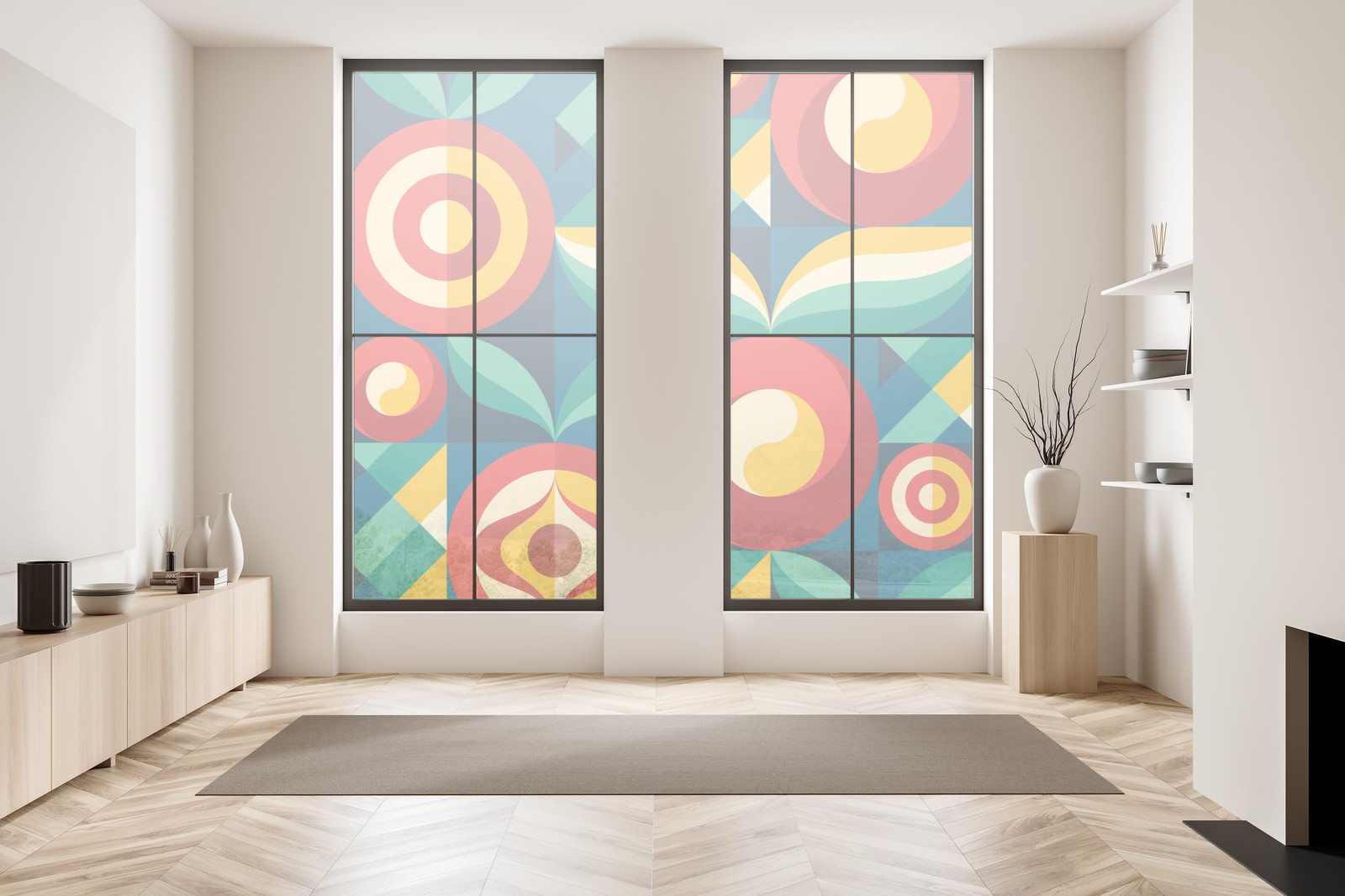 Fensteraufkleber lebhaftes geometrisches blumenmuster