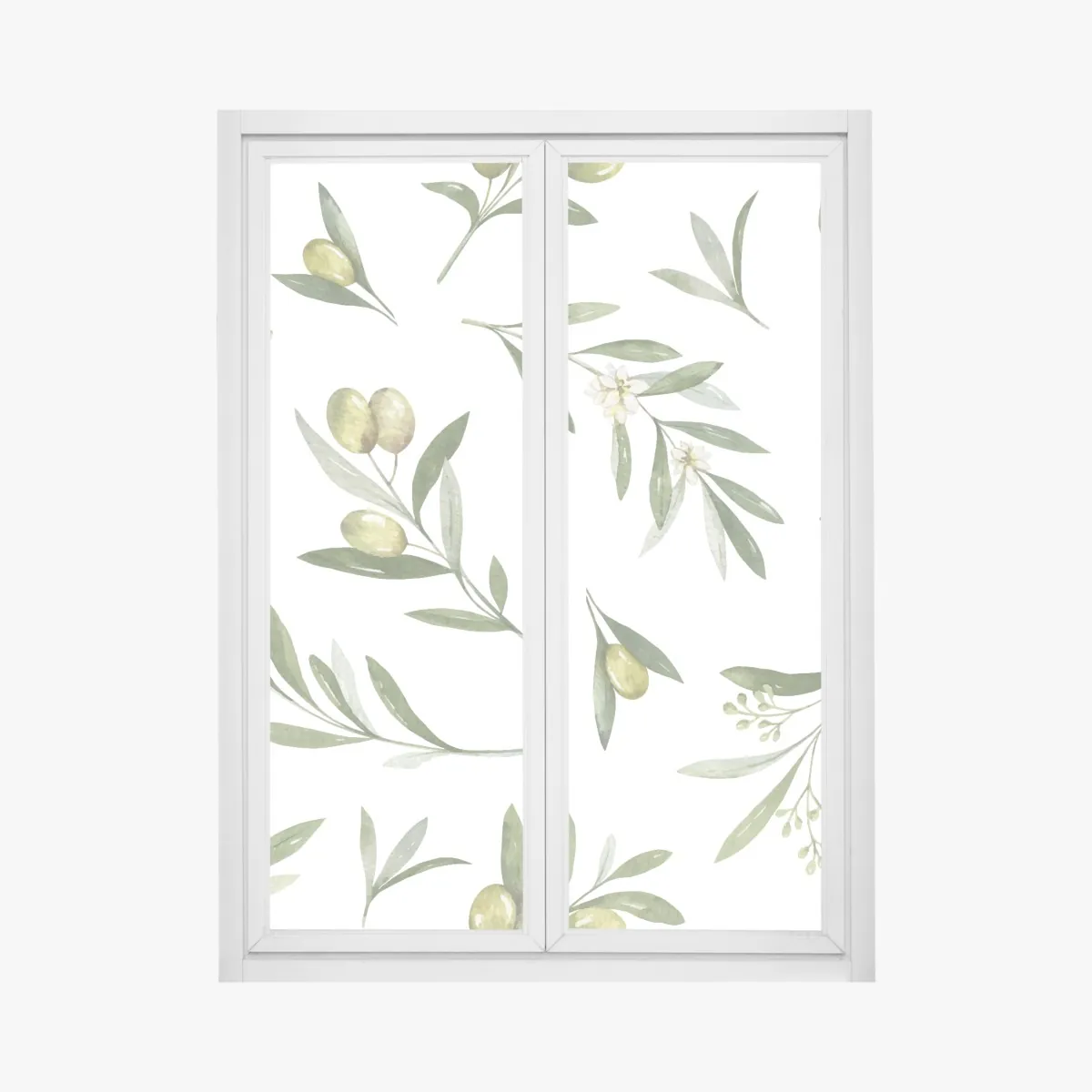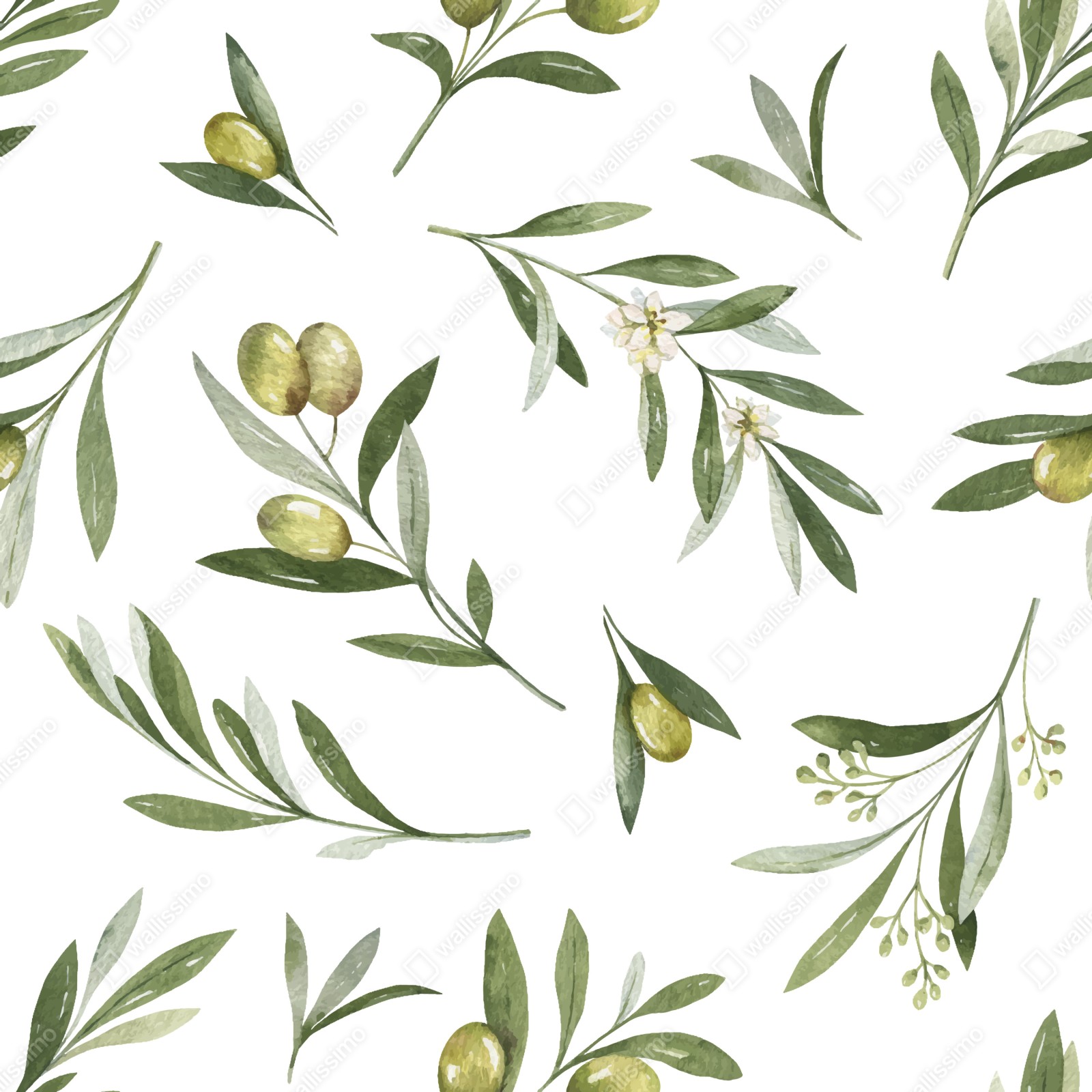 Zarte aquarellierte olivenzweige ergeben ein beruhigendes botanisches muster, ideal für küche und essbereich.