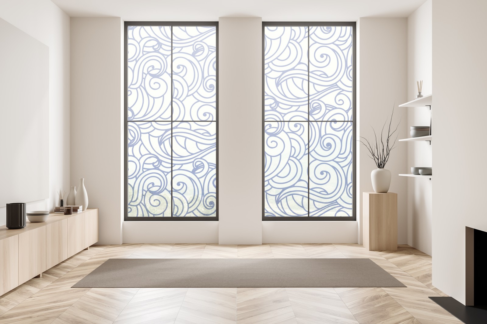 Fensteraufkleber nahtloses blaues wirbelmuster