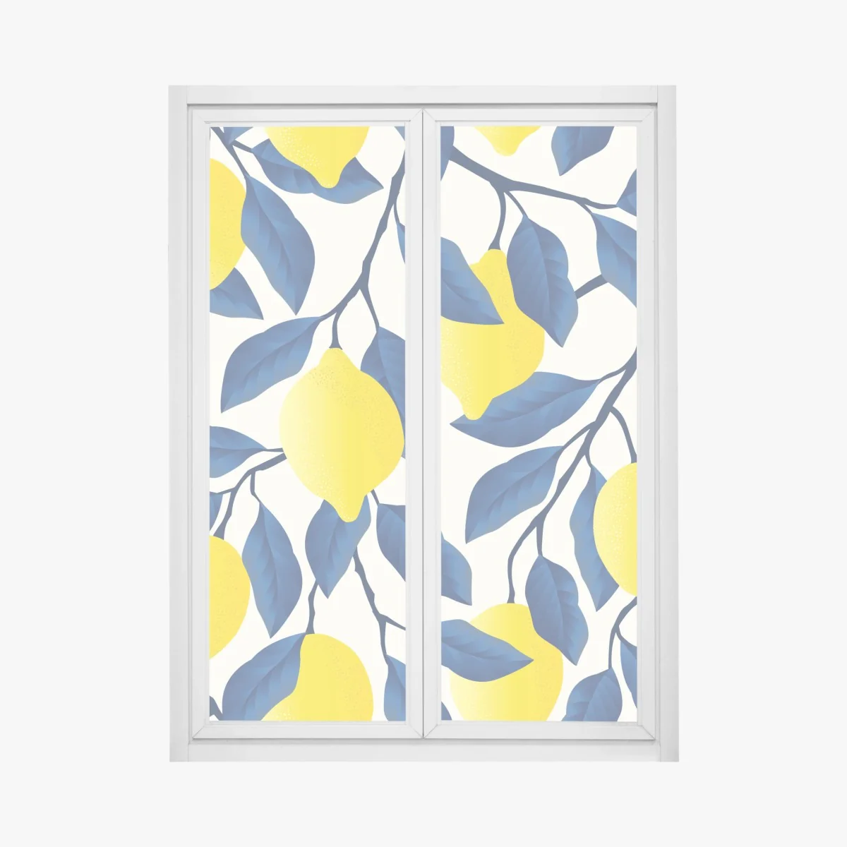 Fensteraufkleber Lebhaftes zitronenmuster mit blauen blättern