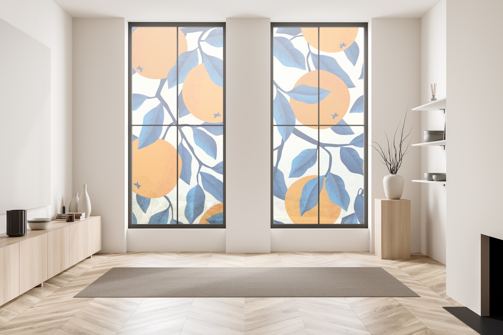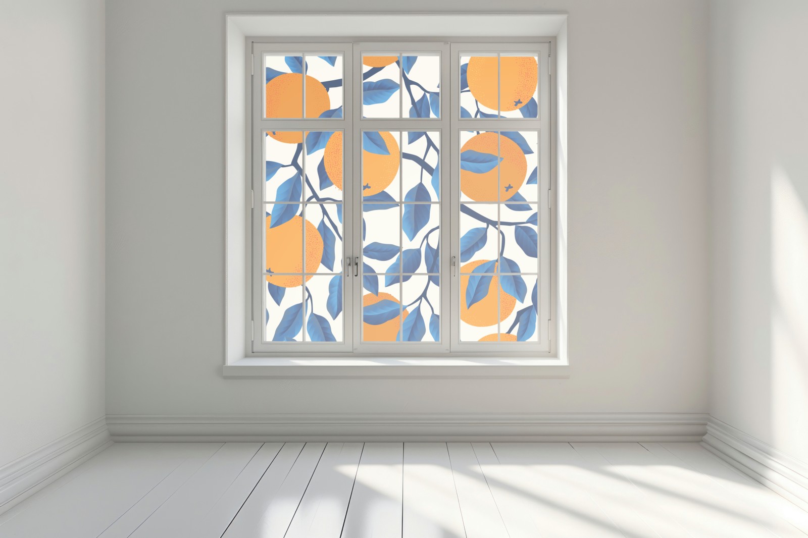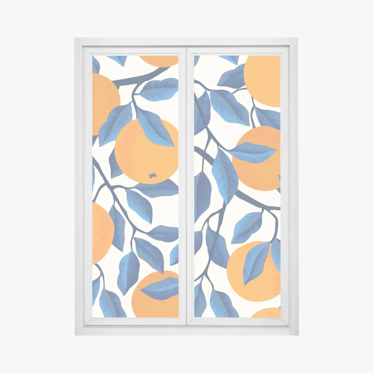 Fensteraufkleber kräftiges zitrusmuster in orange und blau