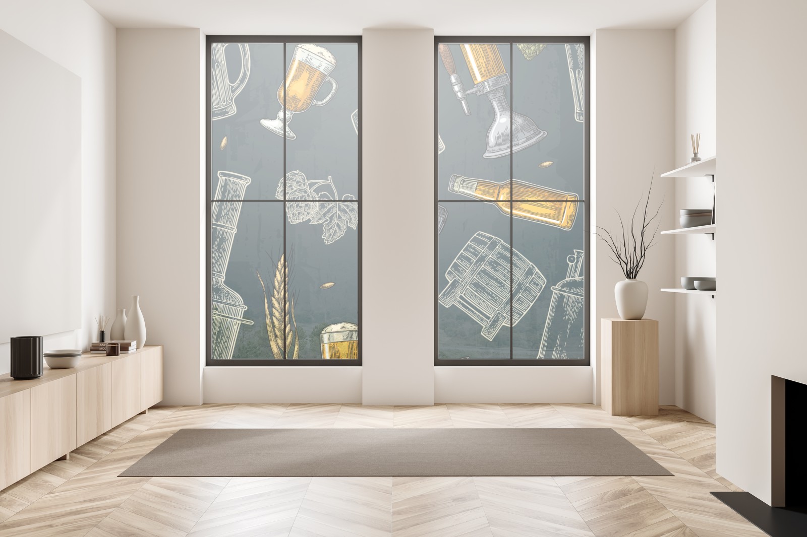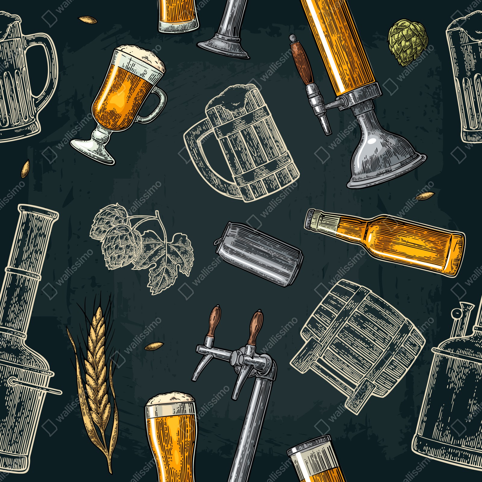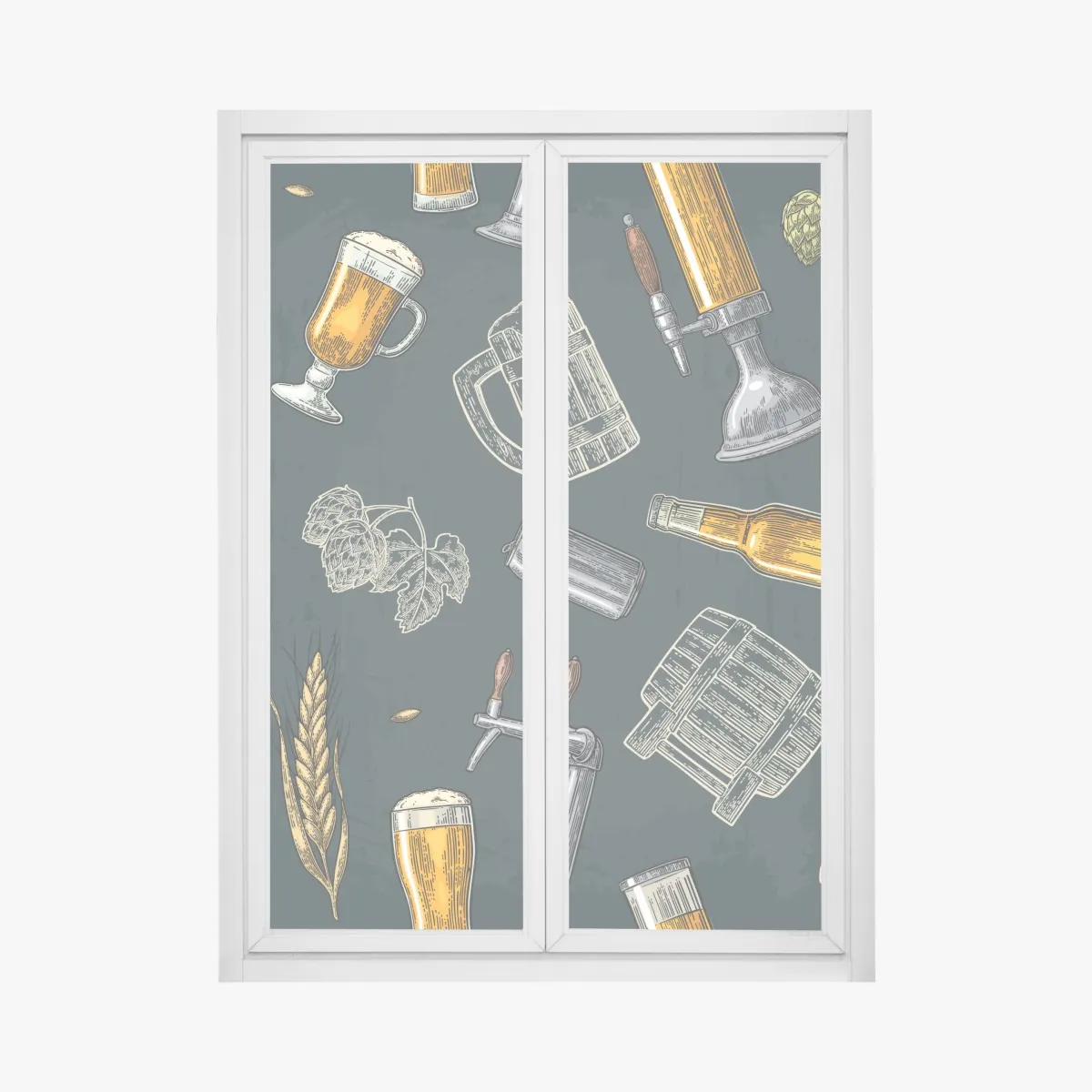 illustrierte bier- und brauereielemente im vintage-stil, die jedem esszimmer oder heimbar charme verleihen.