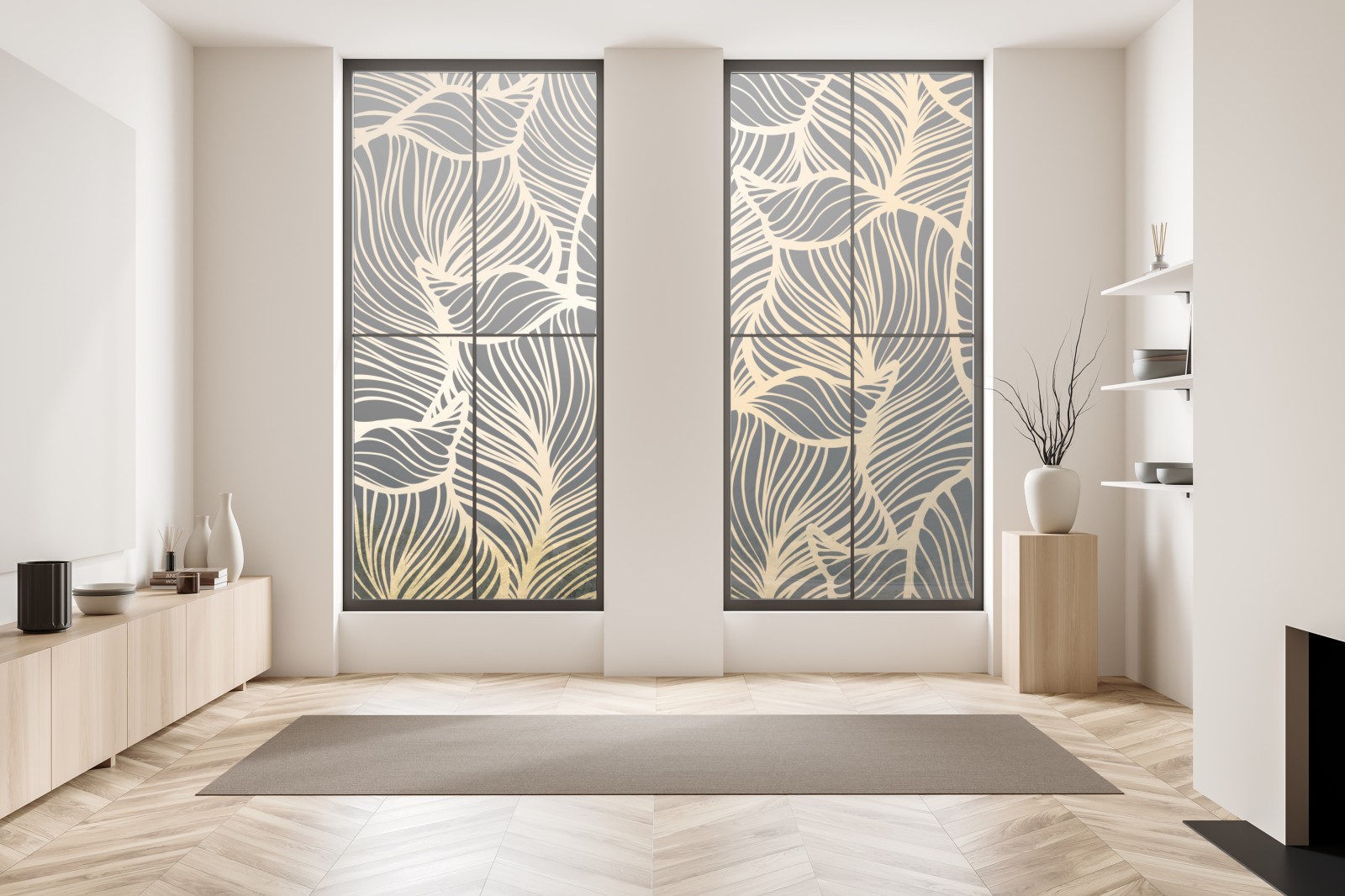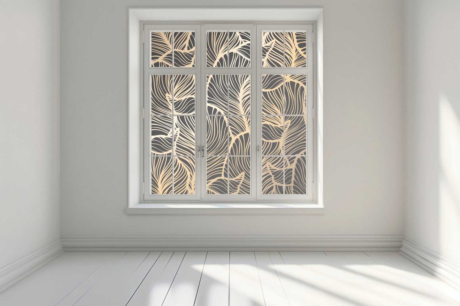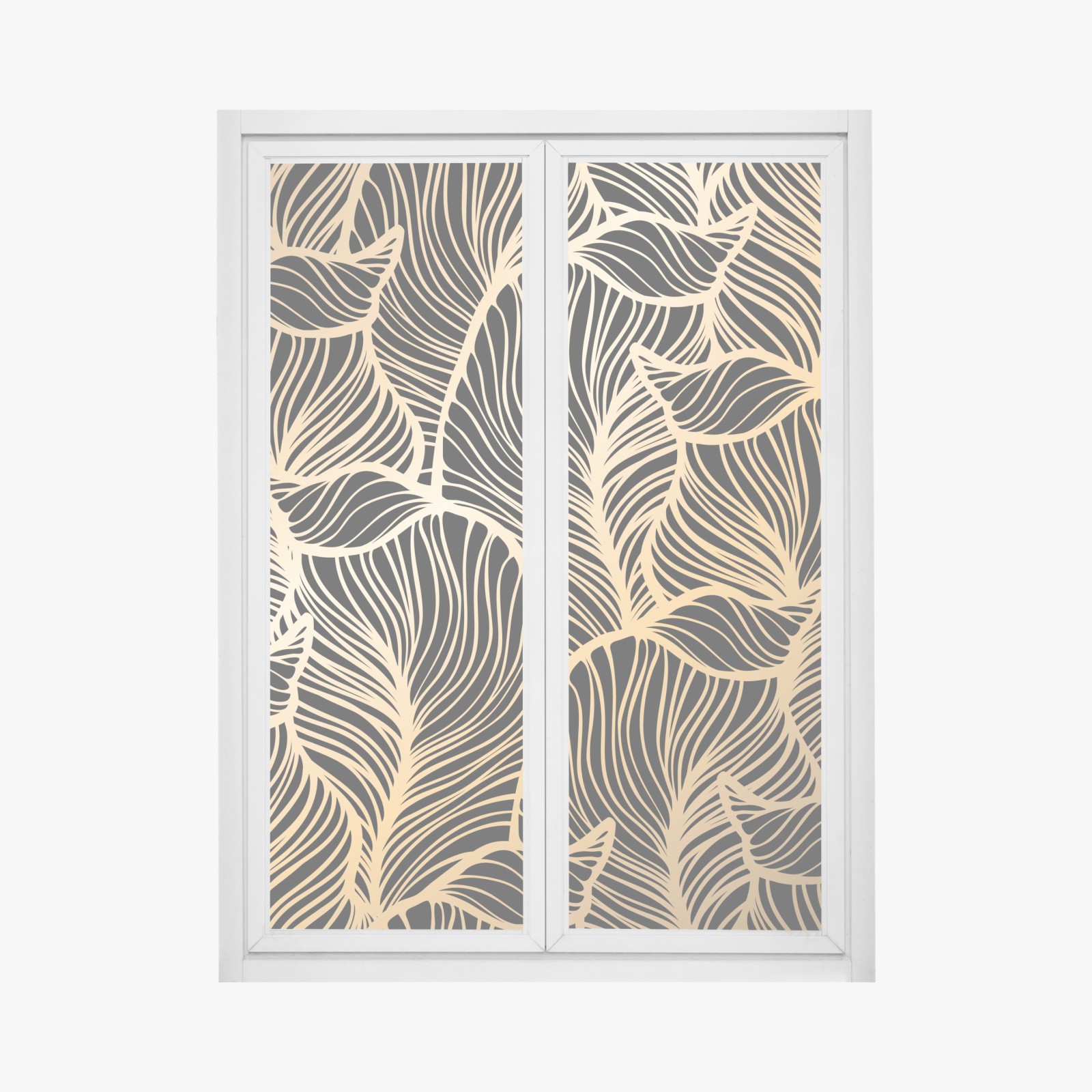 Fensteraufkleber goldenes blattmuster auf schwarzem hintergrund