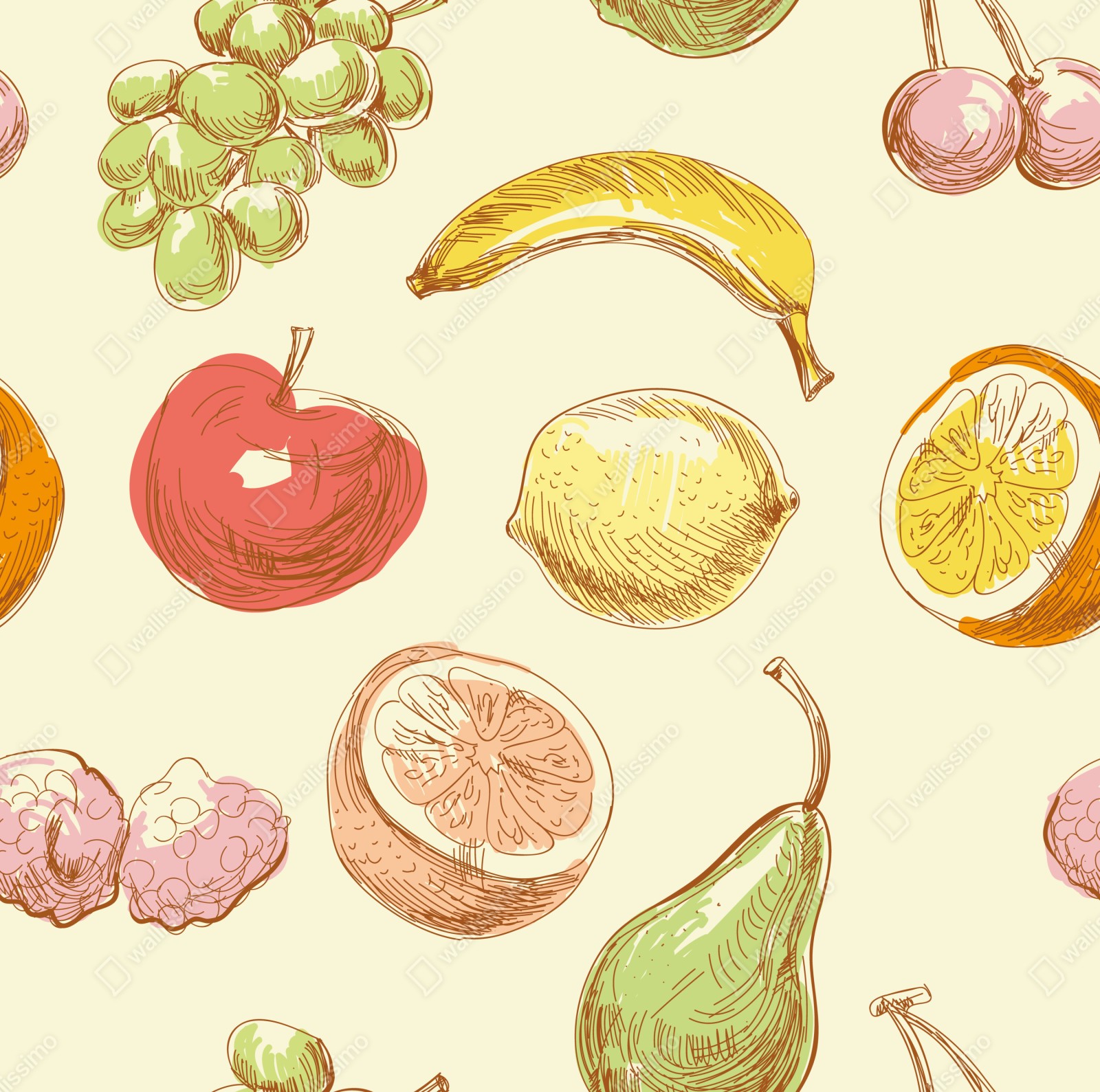 Charmante handgezeichnete Früchte in zarten Pastelltönen verleihen jeder Küche oder jedem Essbereich einen frischen, verspielten Akzent.