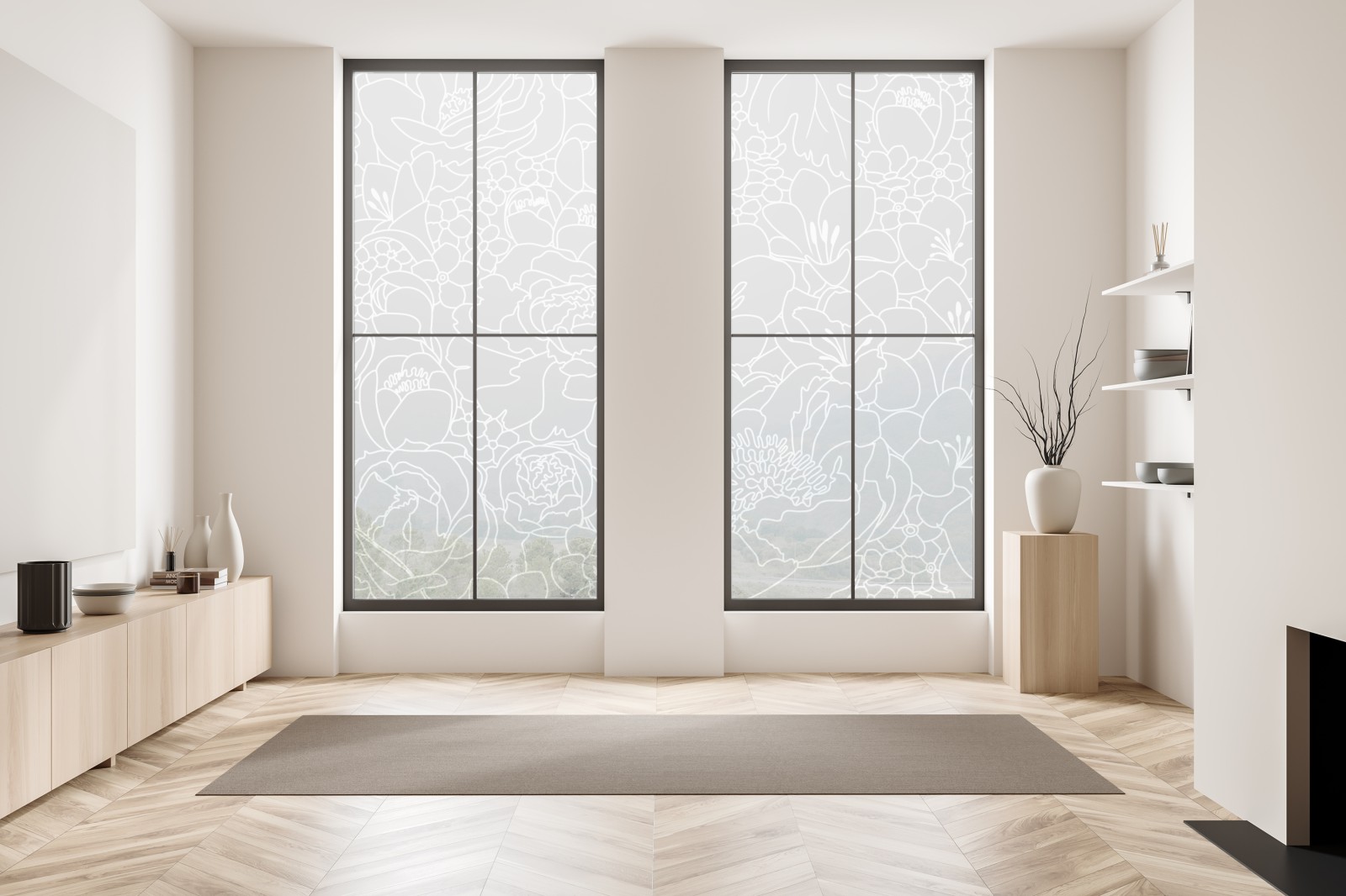 Fensteraufkleber subtiles graues blumenlinienmuster