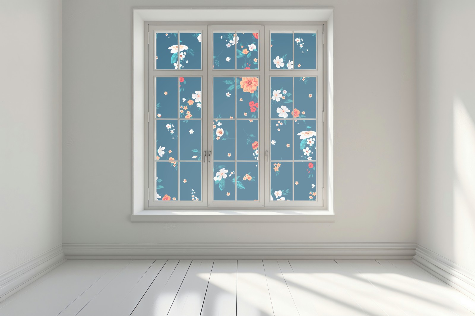 Fensteraufkleber zartes verstreutes blumenmuster auf tiefem türkis