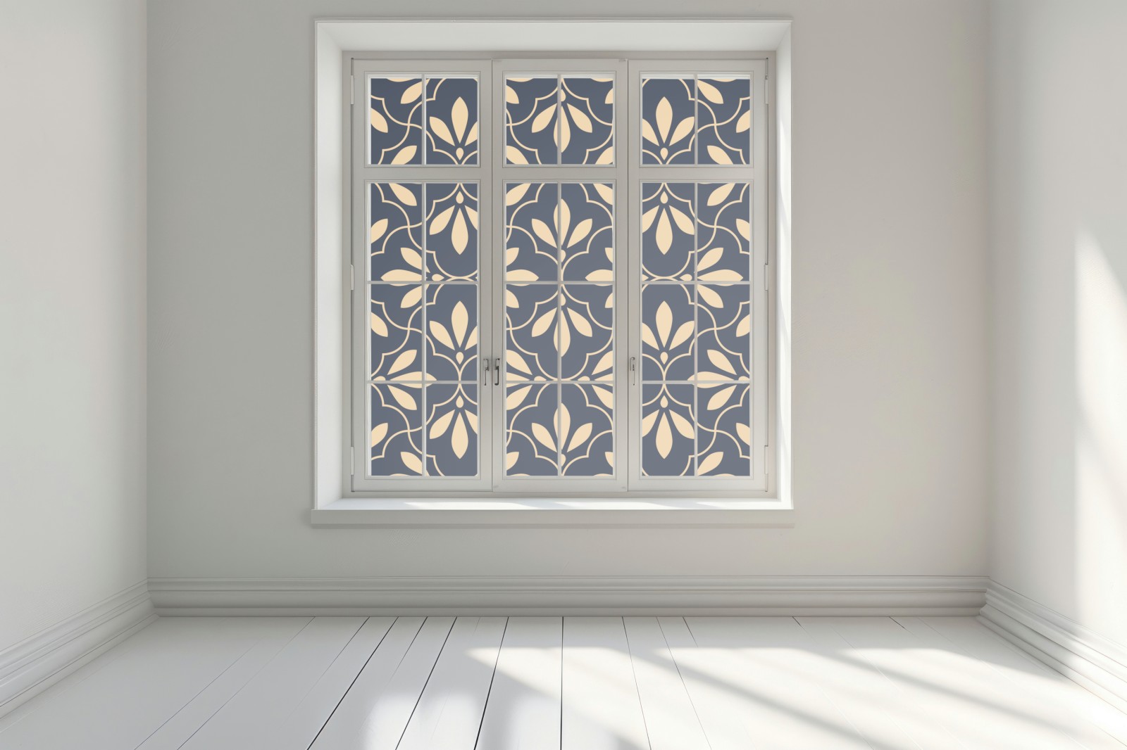 Elegantes marineblau-beiges Ornament, das jedem Innenraum zeitlose Eleganz und Wärme verleiht, ideal für Akzentwände und dekorative Drucke.