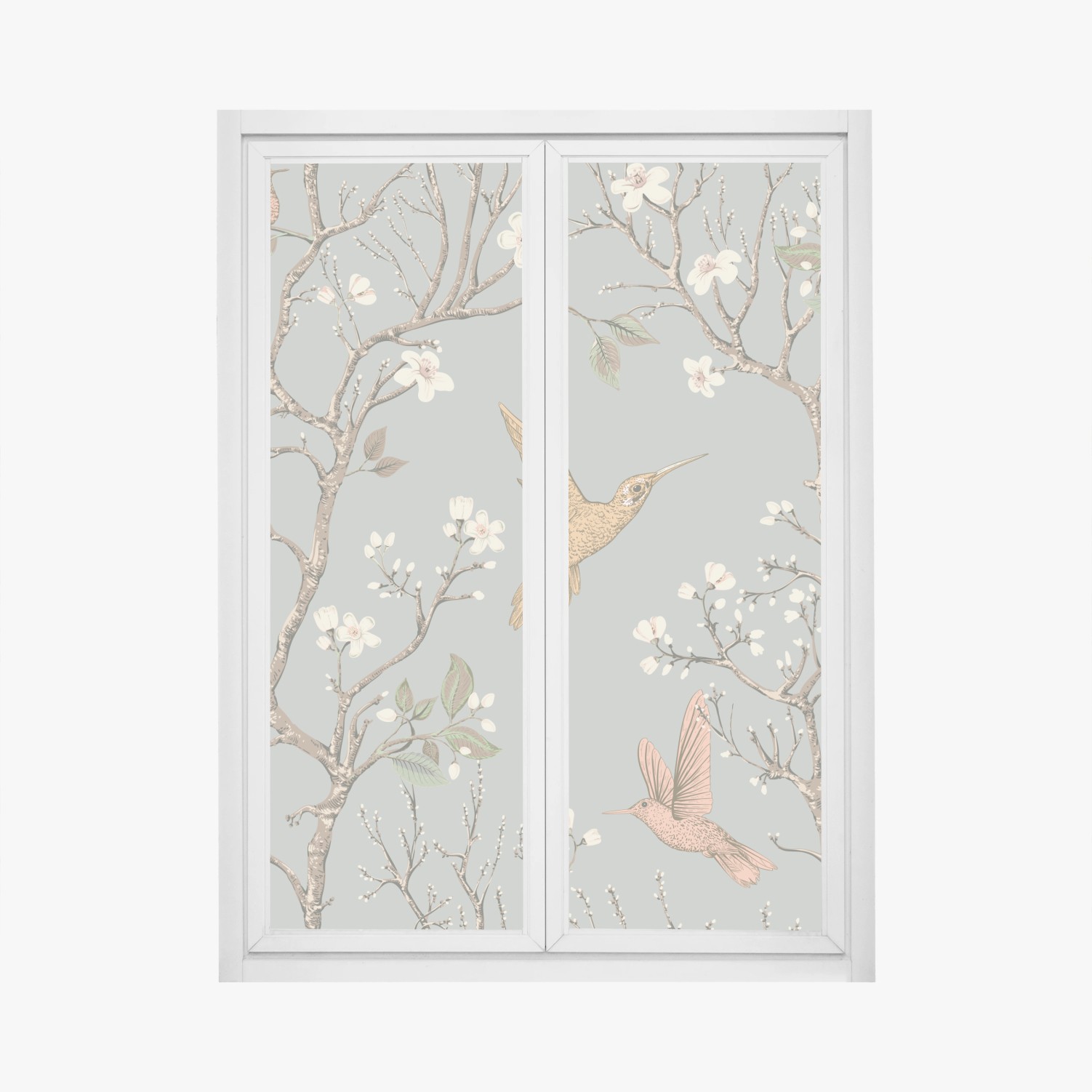 Fensteraufkleber Vintage-muster mit kolibris und blüten