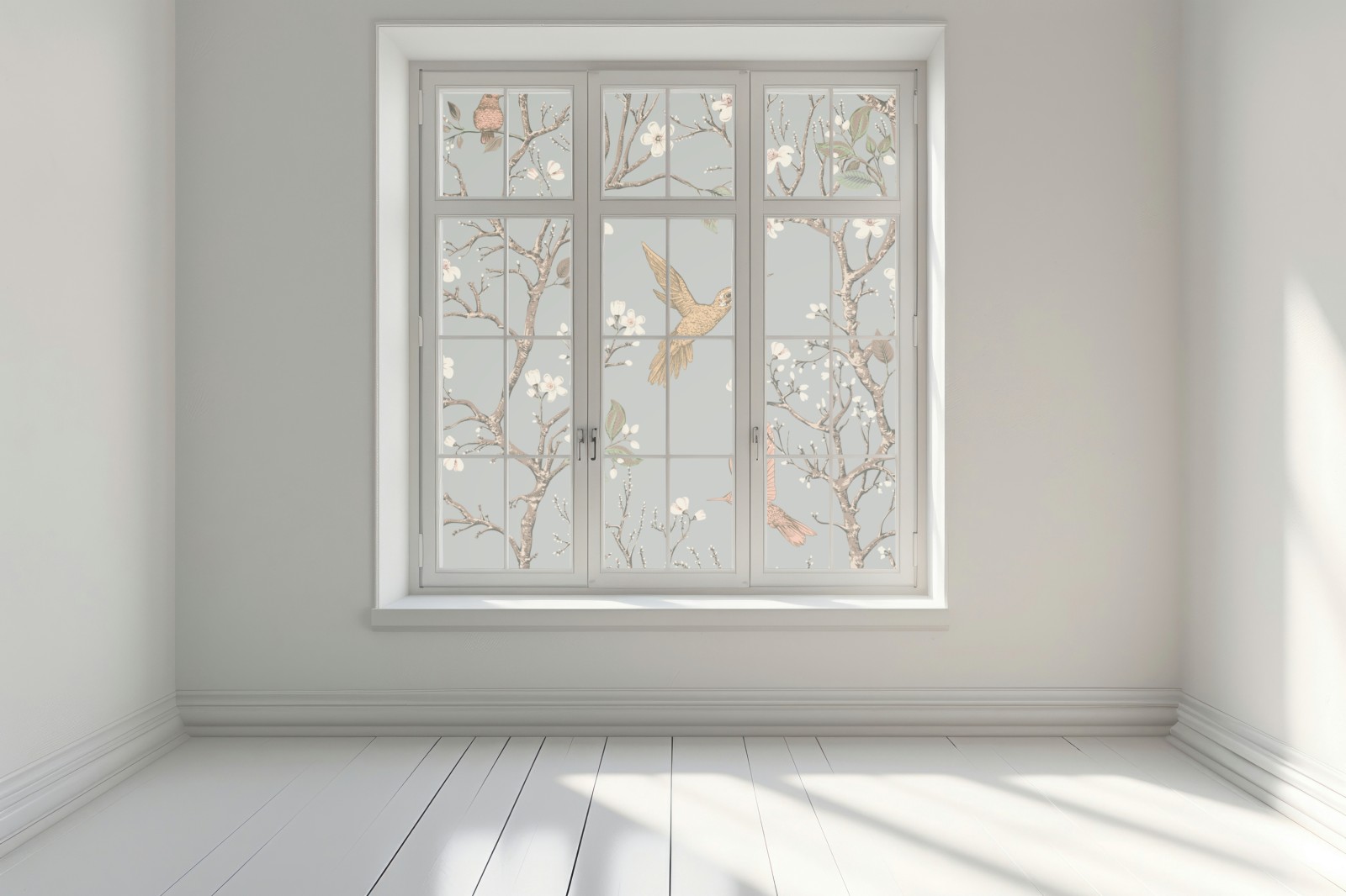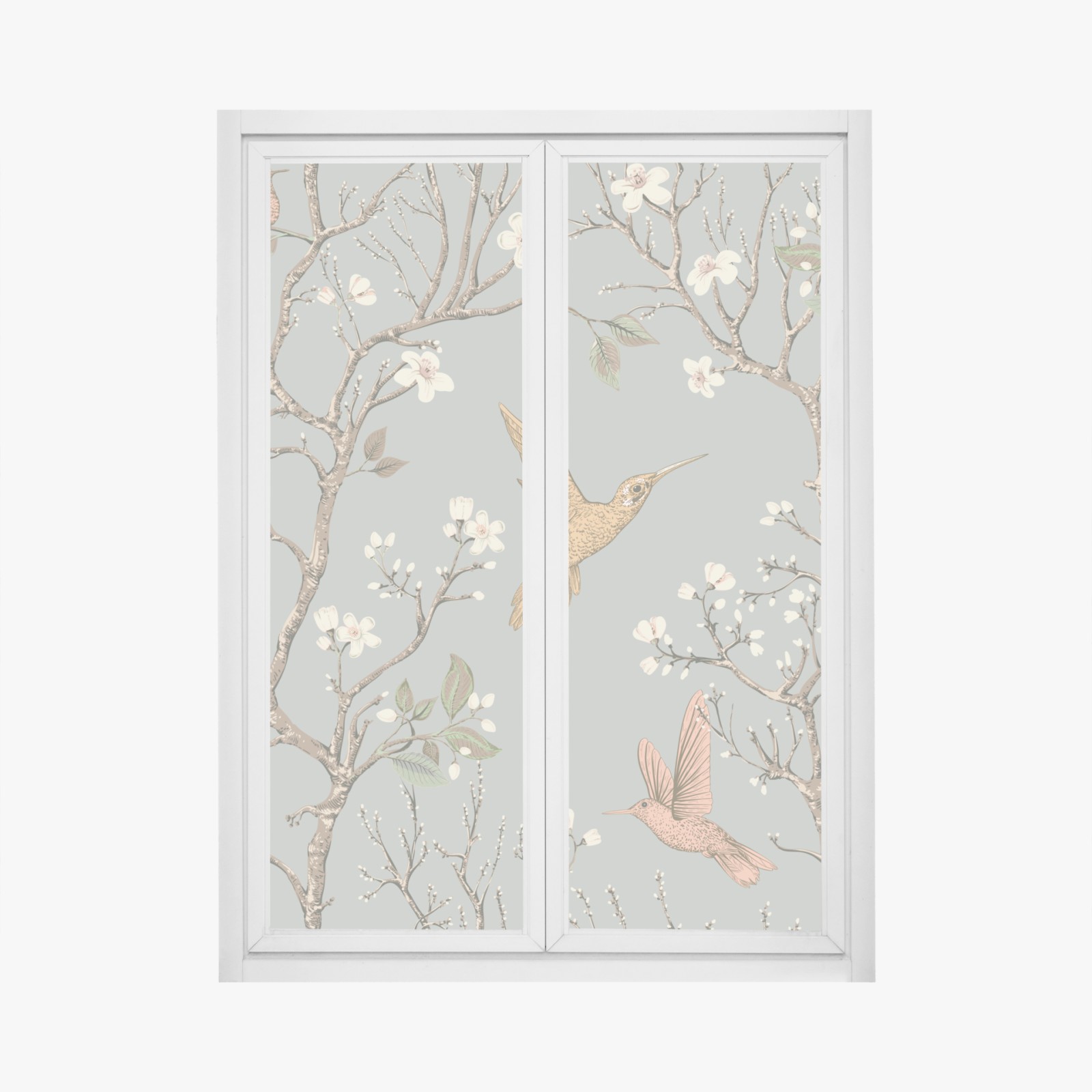 Fensteraufkleber vintage-muster mit kolibris und blüten