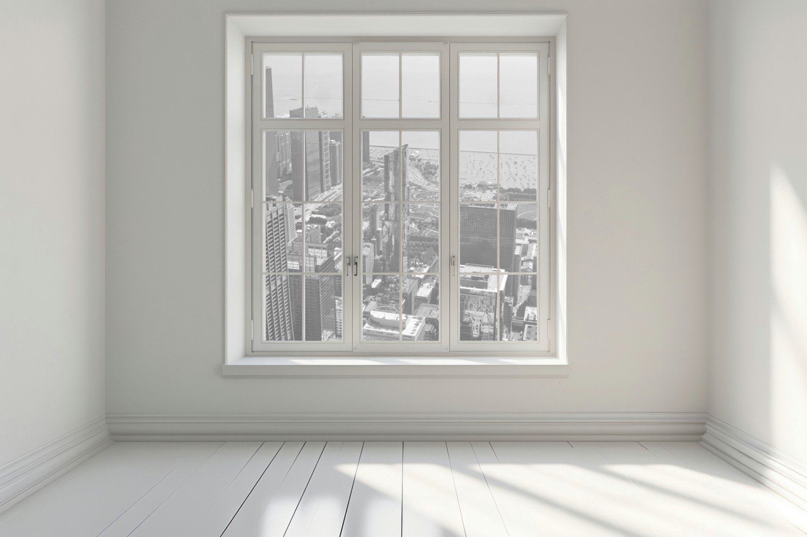 Fensteraufkleber schwarzweißes stadtpanorama am ufer