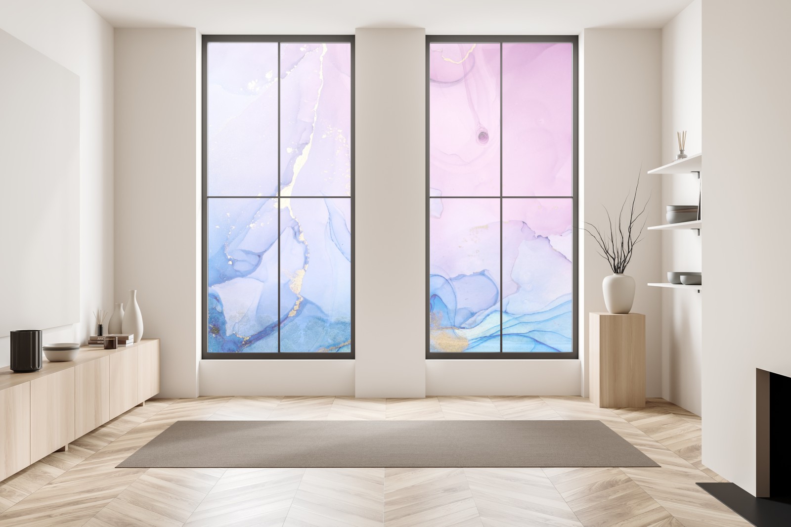 Fensteraufkleber rosa und blaue marmorierte abstraktion