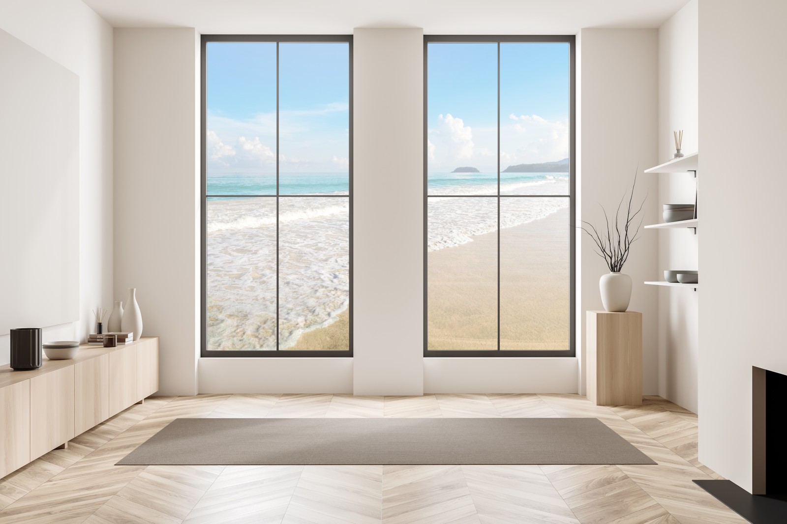 Bringen Sie die beruhigende Atmosphäre des Karon Strandes in Ihren Raum mit dieser lebendigen Meeresaufnahme mit türkisblauem Wasser, goldenem Sand und klarem Himmel.