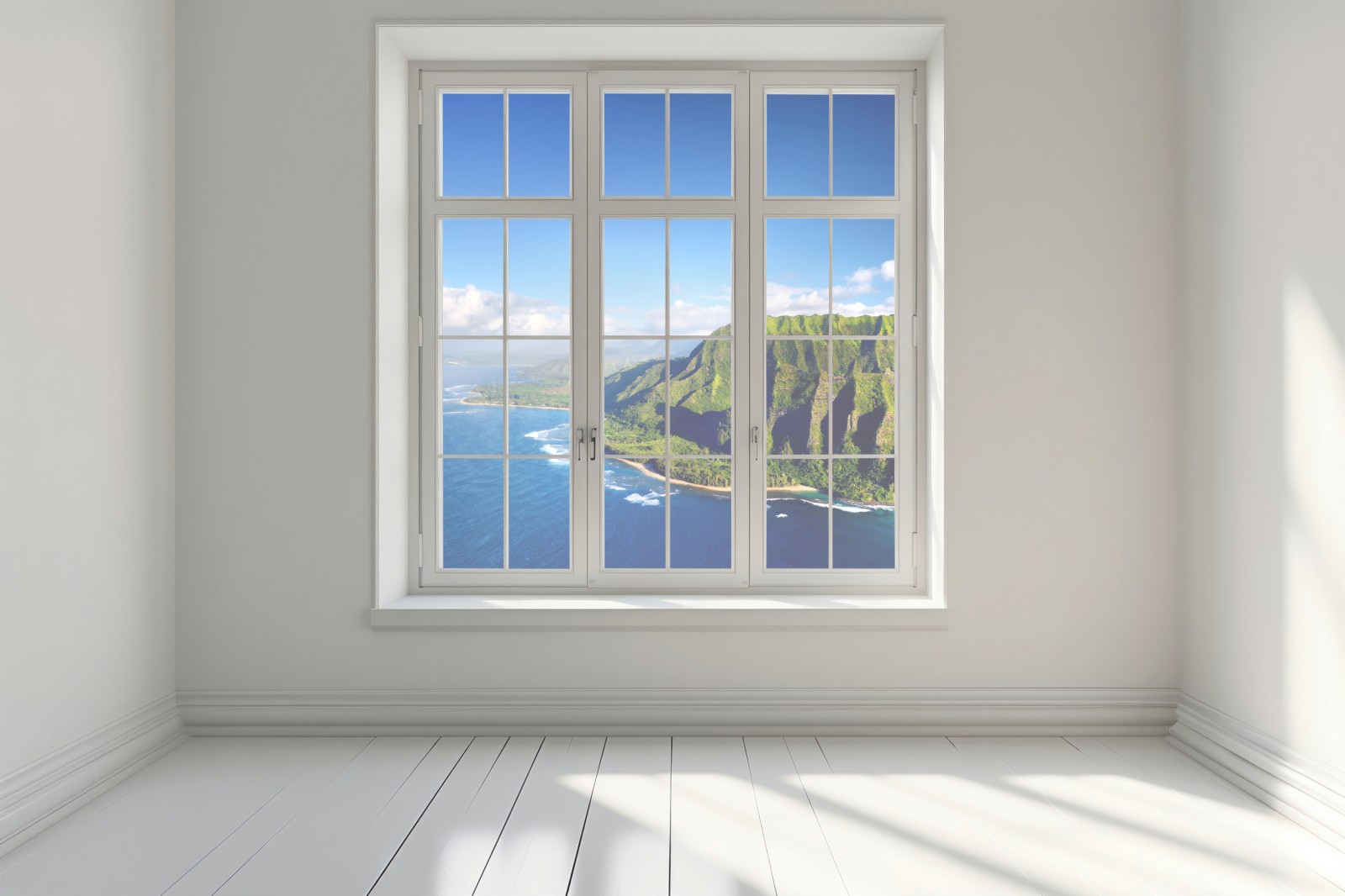 atemberaubender panoramablick auf grüne klippen und tiefblaues meer bringt eine beruhigende, tropische atmosphäre in jeden raum.