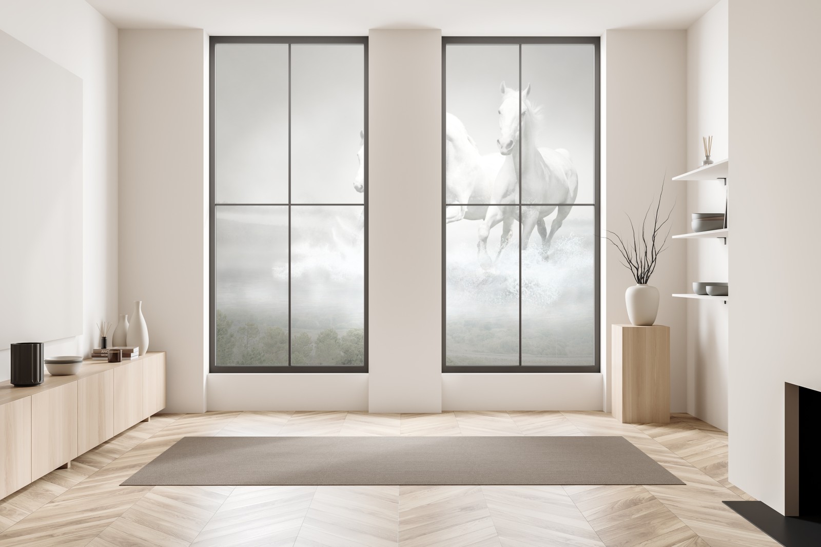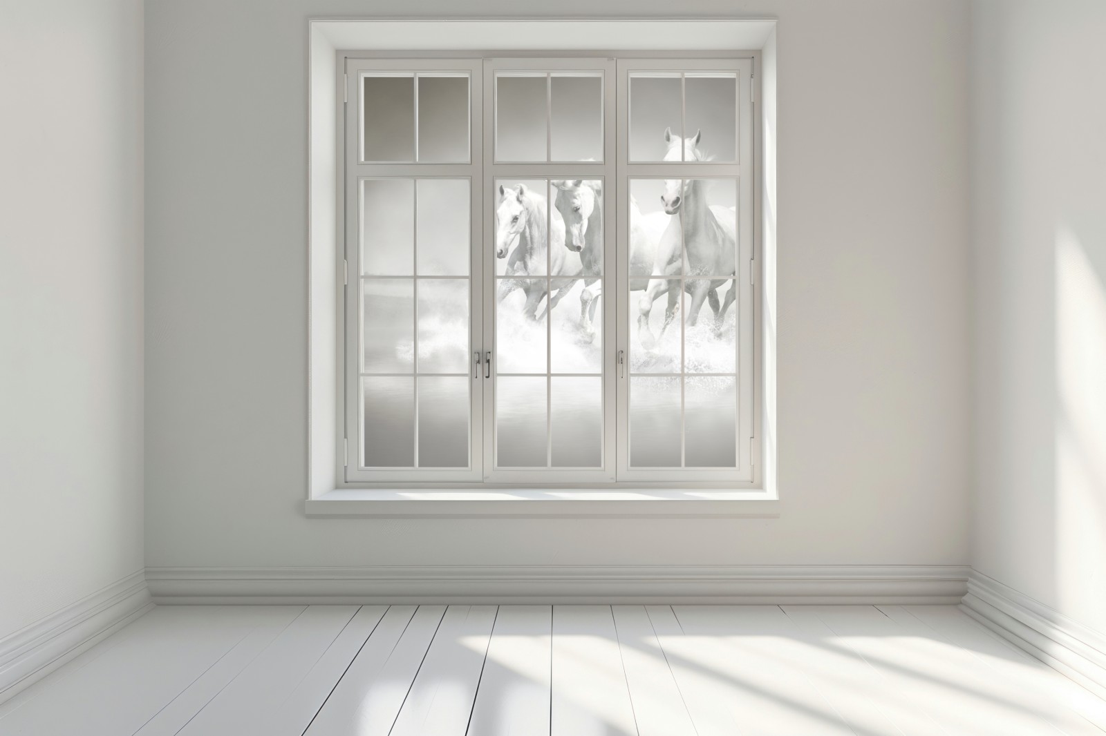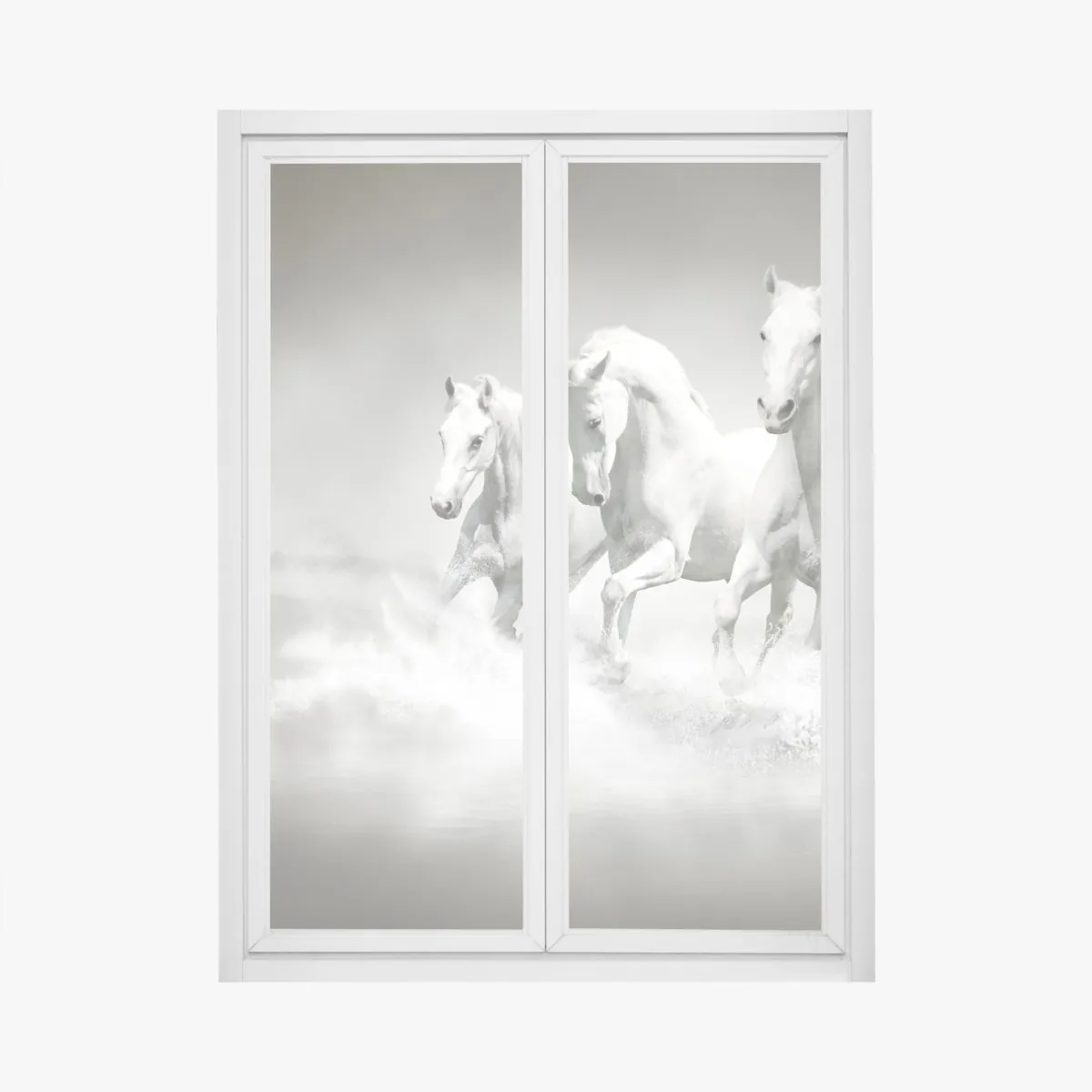 Fensteraufkleber drei weiße pferde im galopp durch wasser