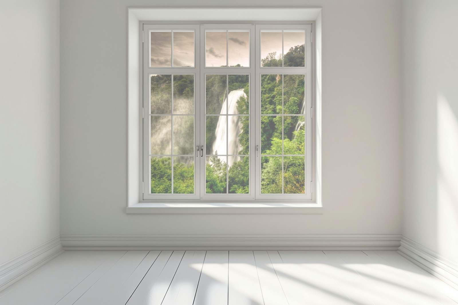 Erleben Sie die beruhigende Kraft des fallenden Wassers und üppiges Grün in Ihrem Zuhause mit diesem eindrucksvollen Bild des Marmore Wasserfalls in Umbrien.