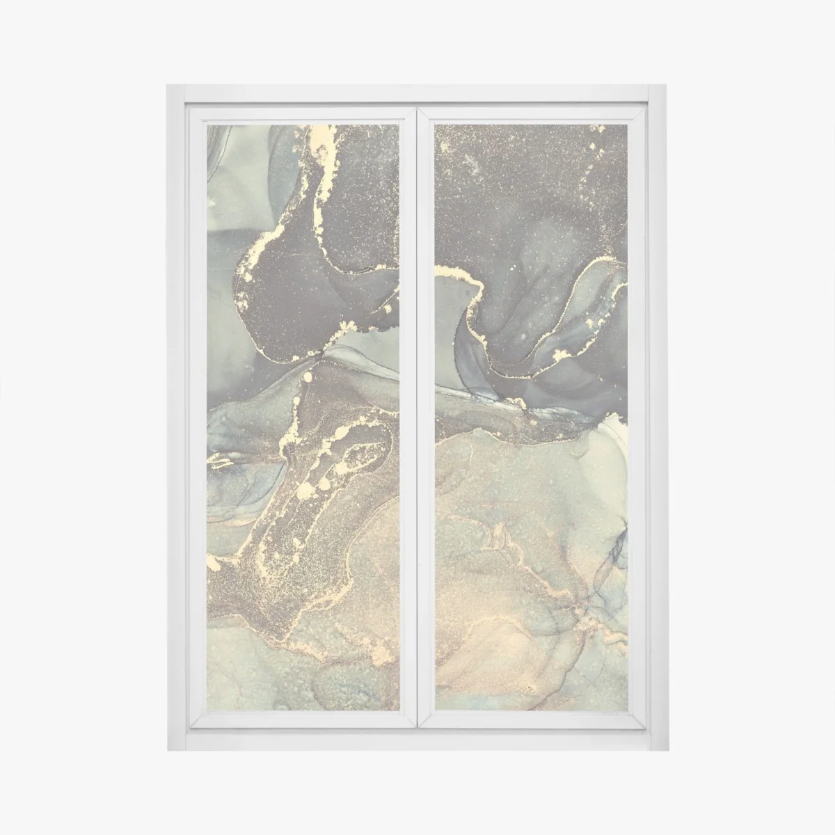 Fensteraufkleber Türkis und gold fließende abstraktion