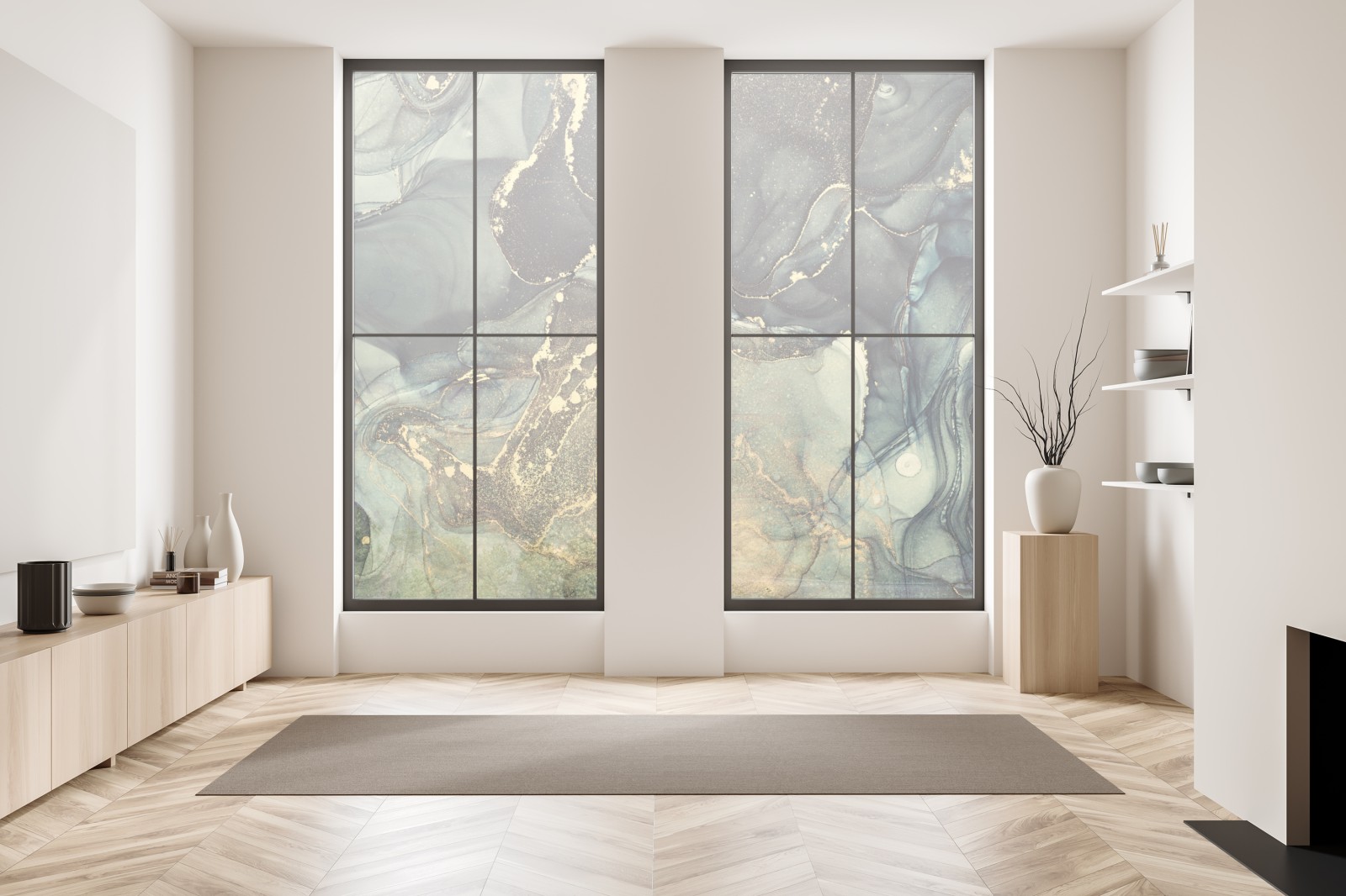 Elegante türkis-goldene fließende abstraktion mit schimmernden akzenten verleiht modernen räumen einen luxuriösen, verträumten touch.