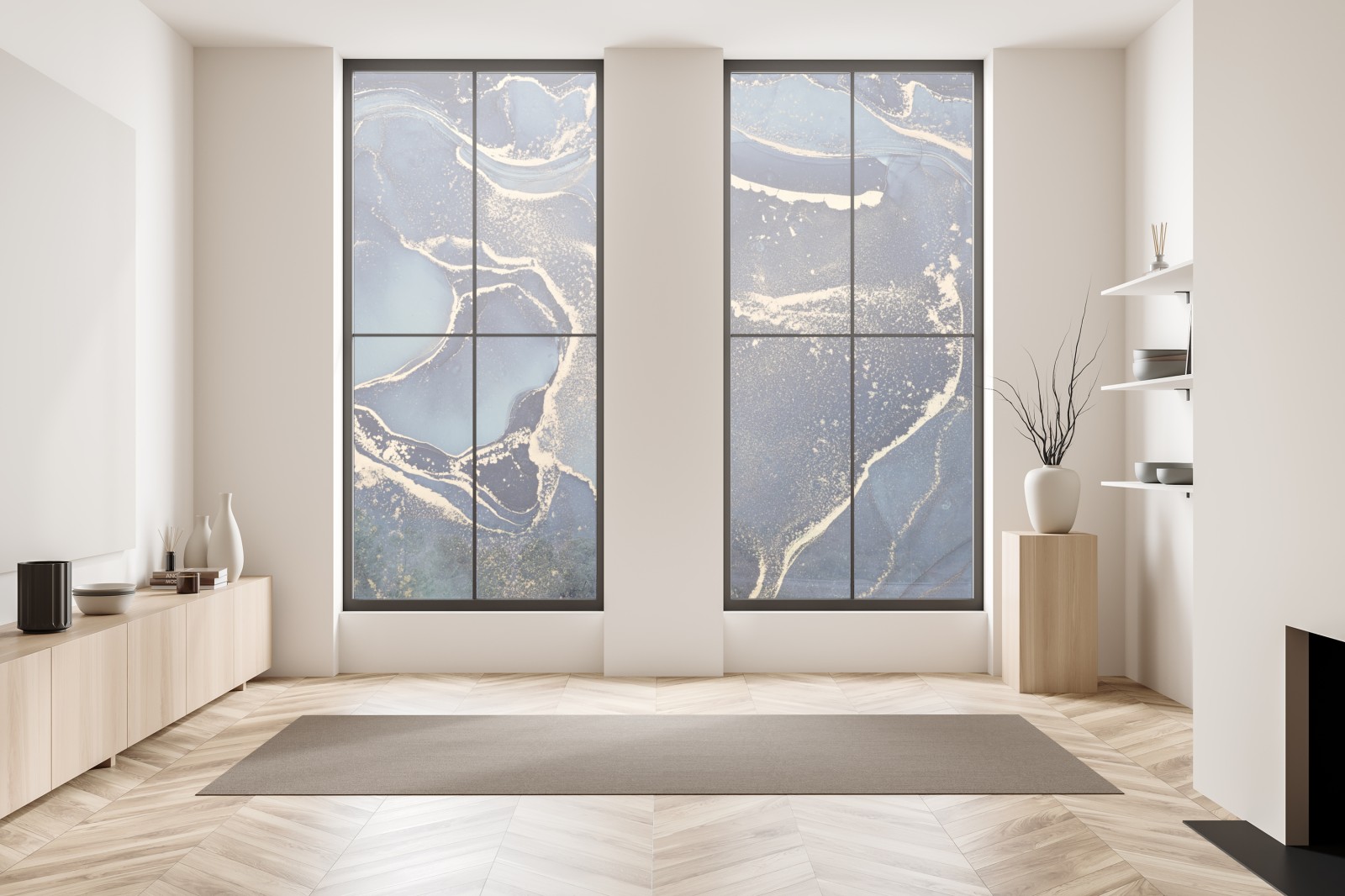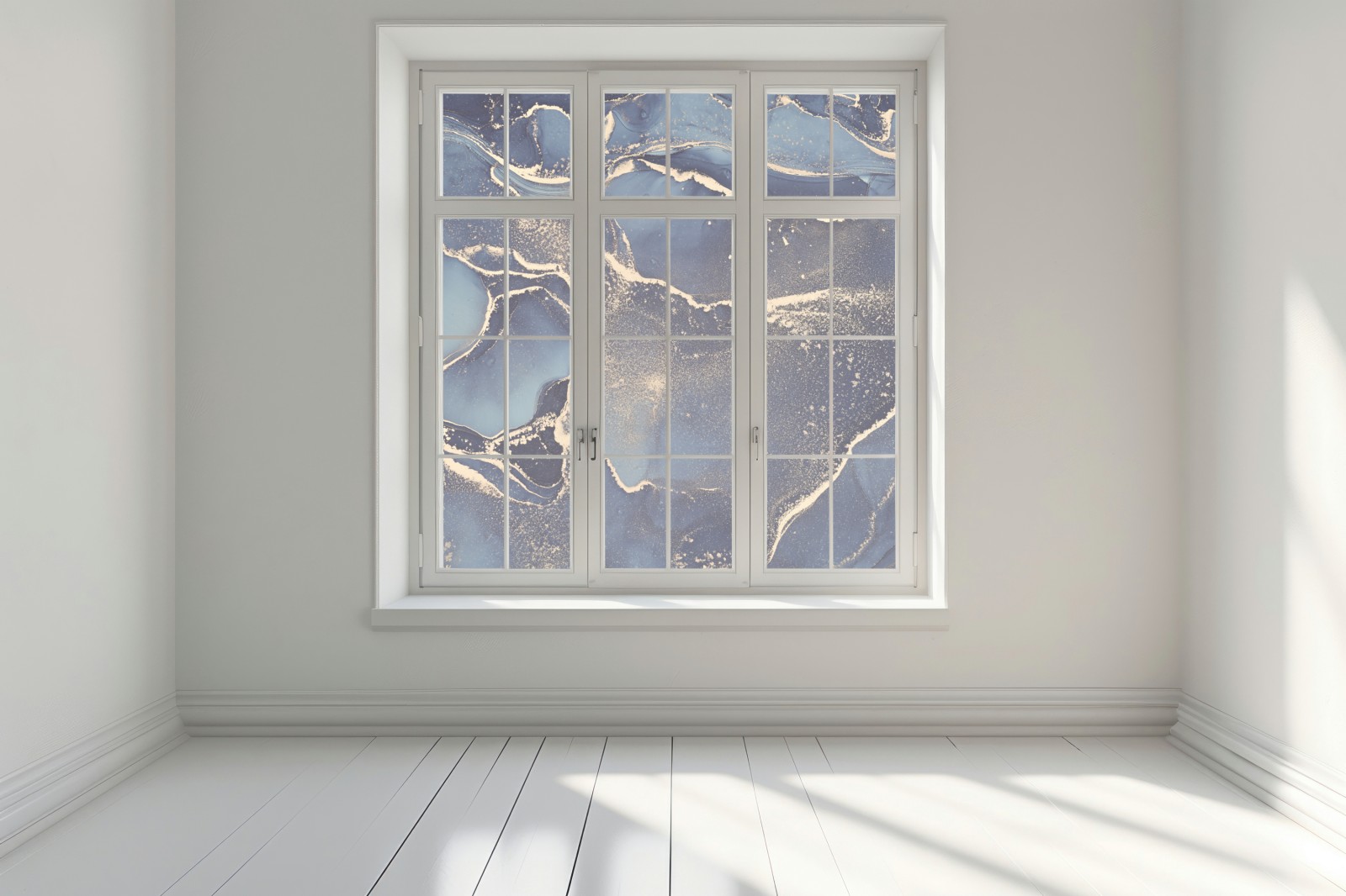 Fensteraufkleber traumhafte abstrakte fließmalerei in blau und gold