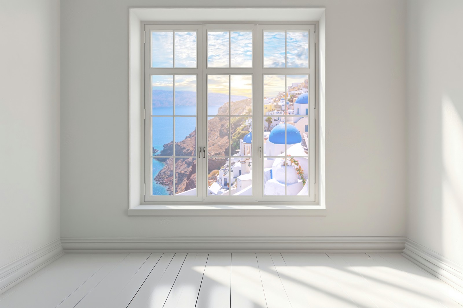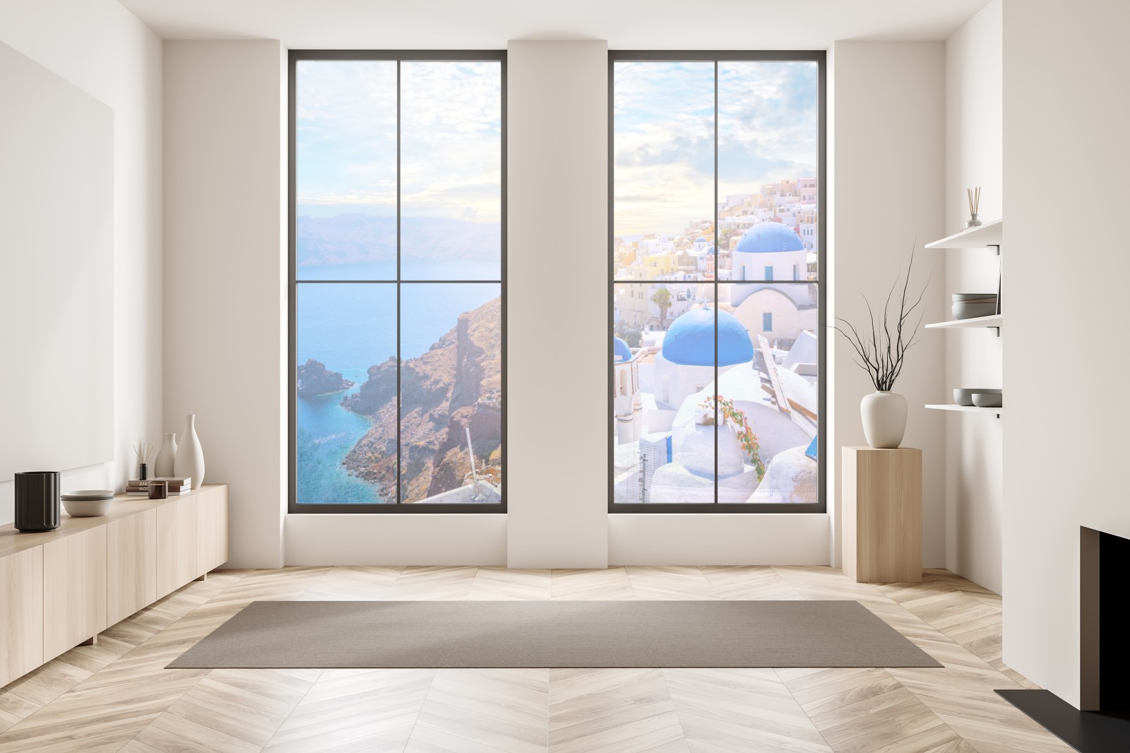 Fensteraufkleber sonniges Oia auf der caldera von Santorini