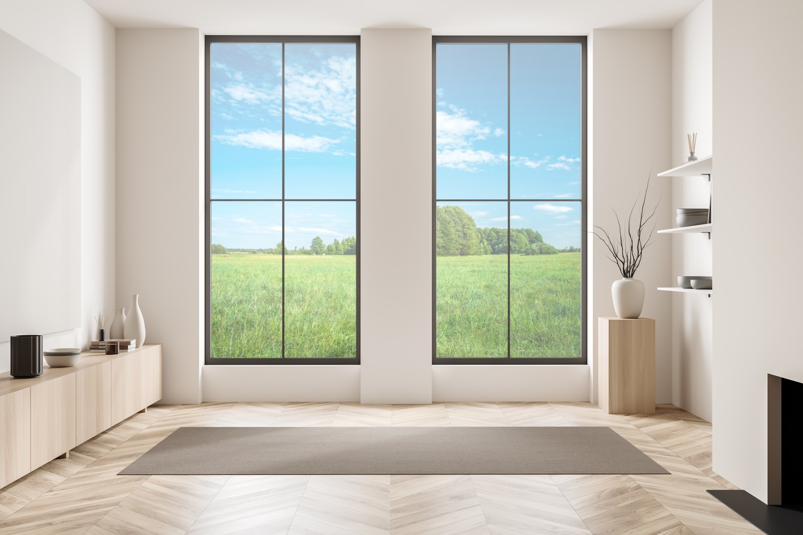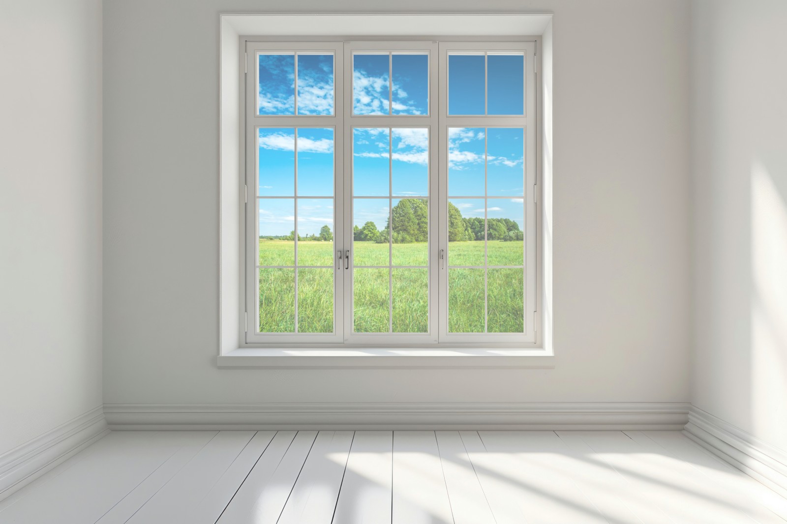 Fensteraufkleber sonnige grüne wiese unter blauem himmel