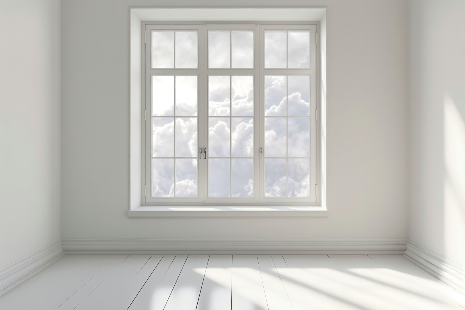 Beruhende wolkenlandschaft in sanften weißen und grauen tönen die jedem raum leichtigkeit und ruhe verleiht.