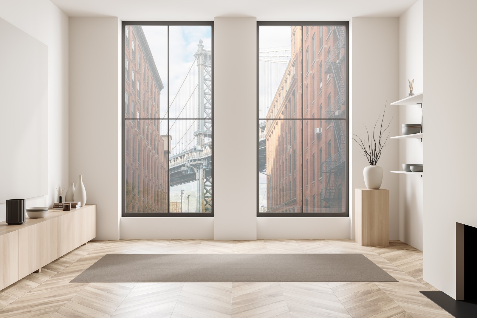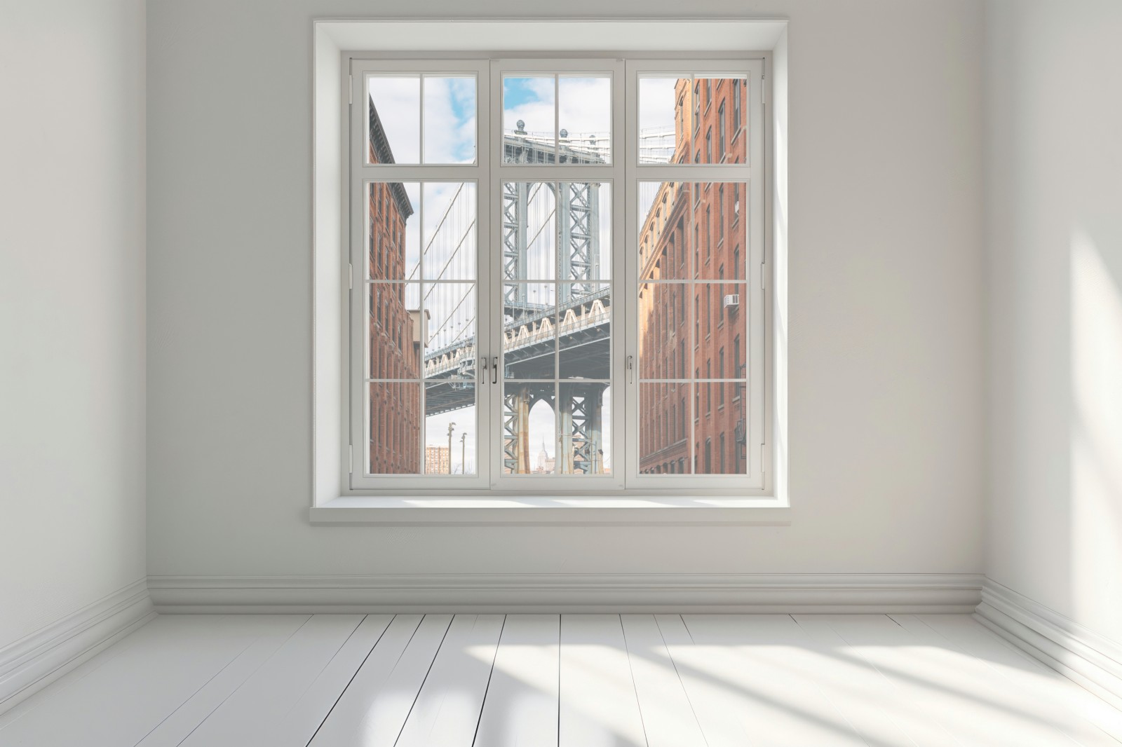 Fensteraufkleber Brooklyn brücke eingerahmt von backsteingebäuden