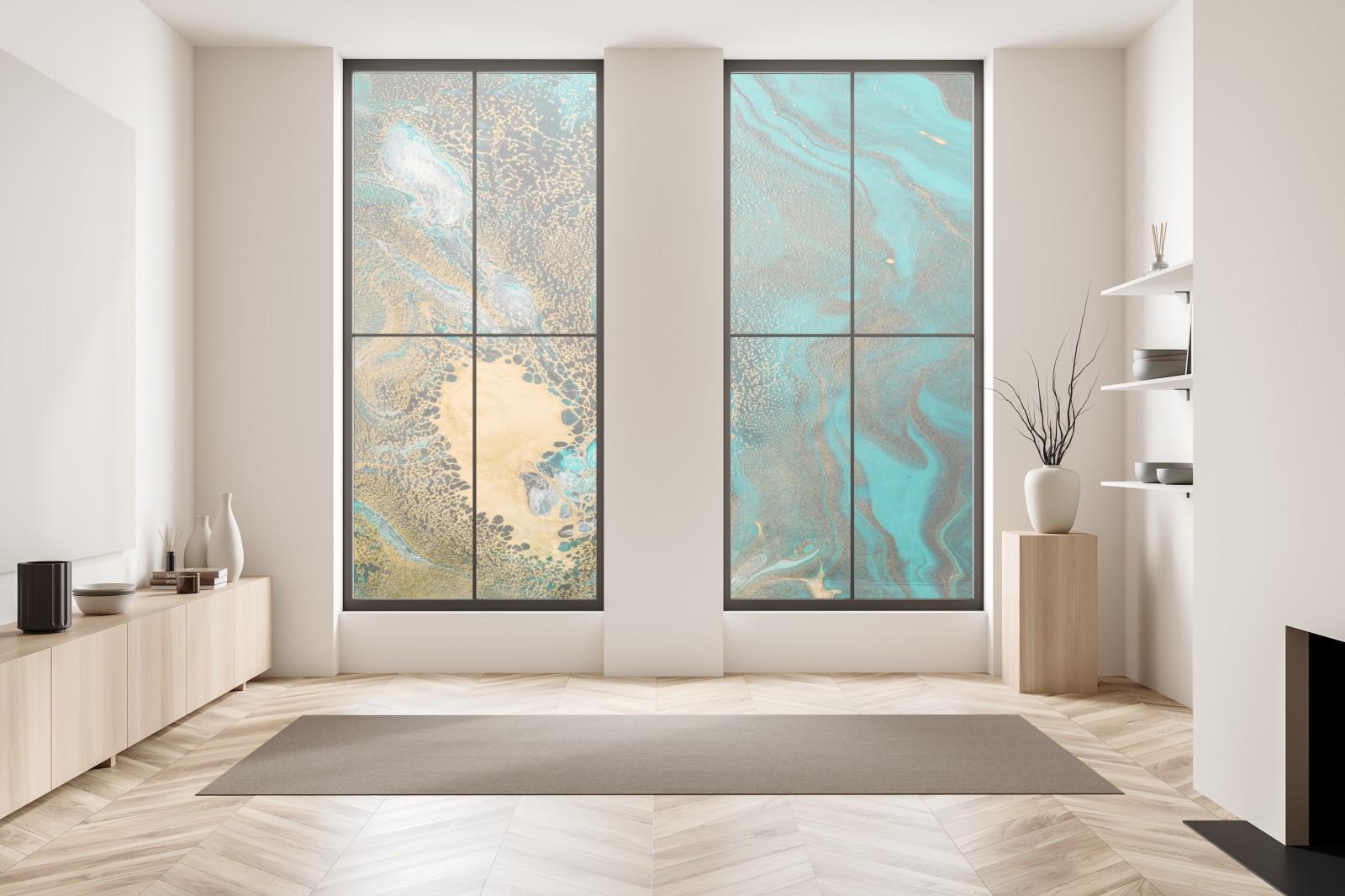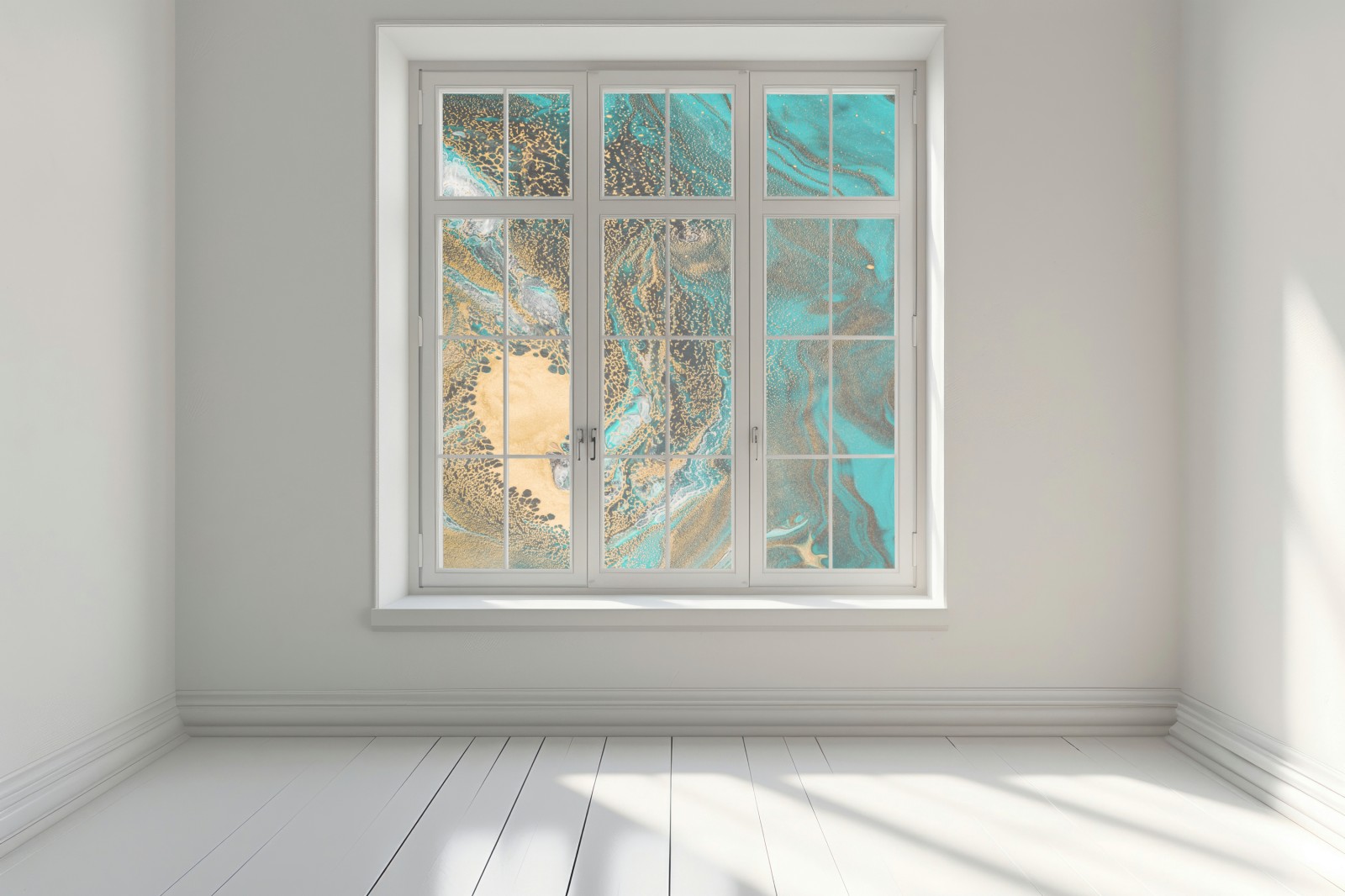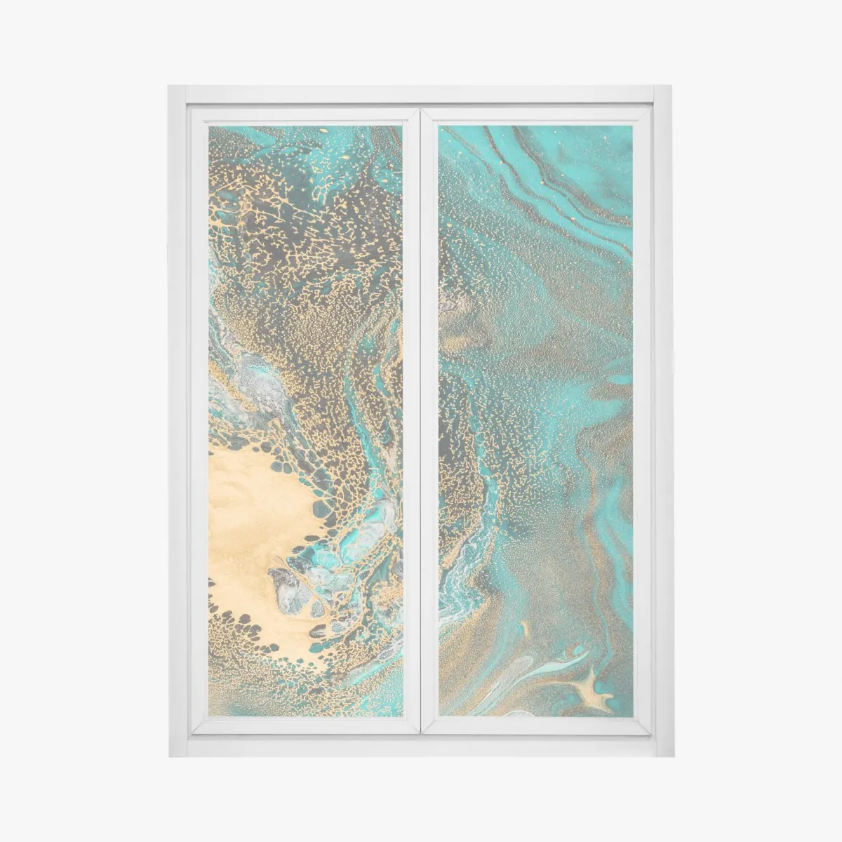 Lebendige türkis- und goldfarbene abstrakte Komposition mit fließenden Marmortexturen, die jedem Raum einen modernen und luxuriösen Akzent verleiht.