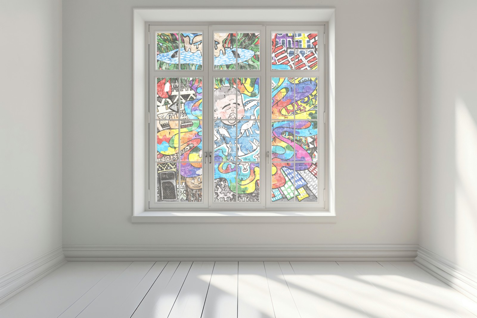 Fensteraufkleber buntes graffiti-mural mit träumendem kind