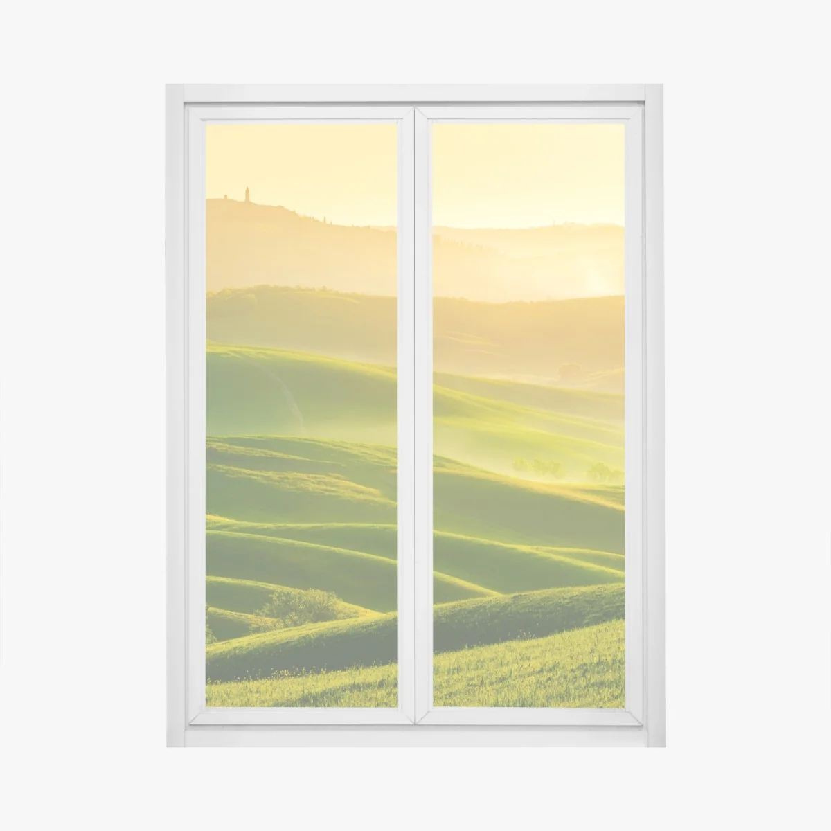 Fensteraufkleber Goldener sonnenaufgang über sanften grünen hügeln