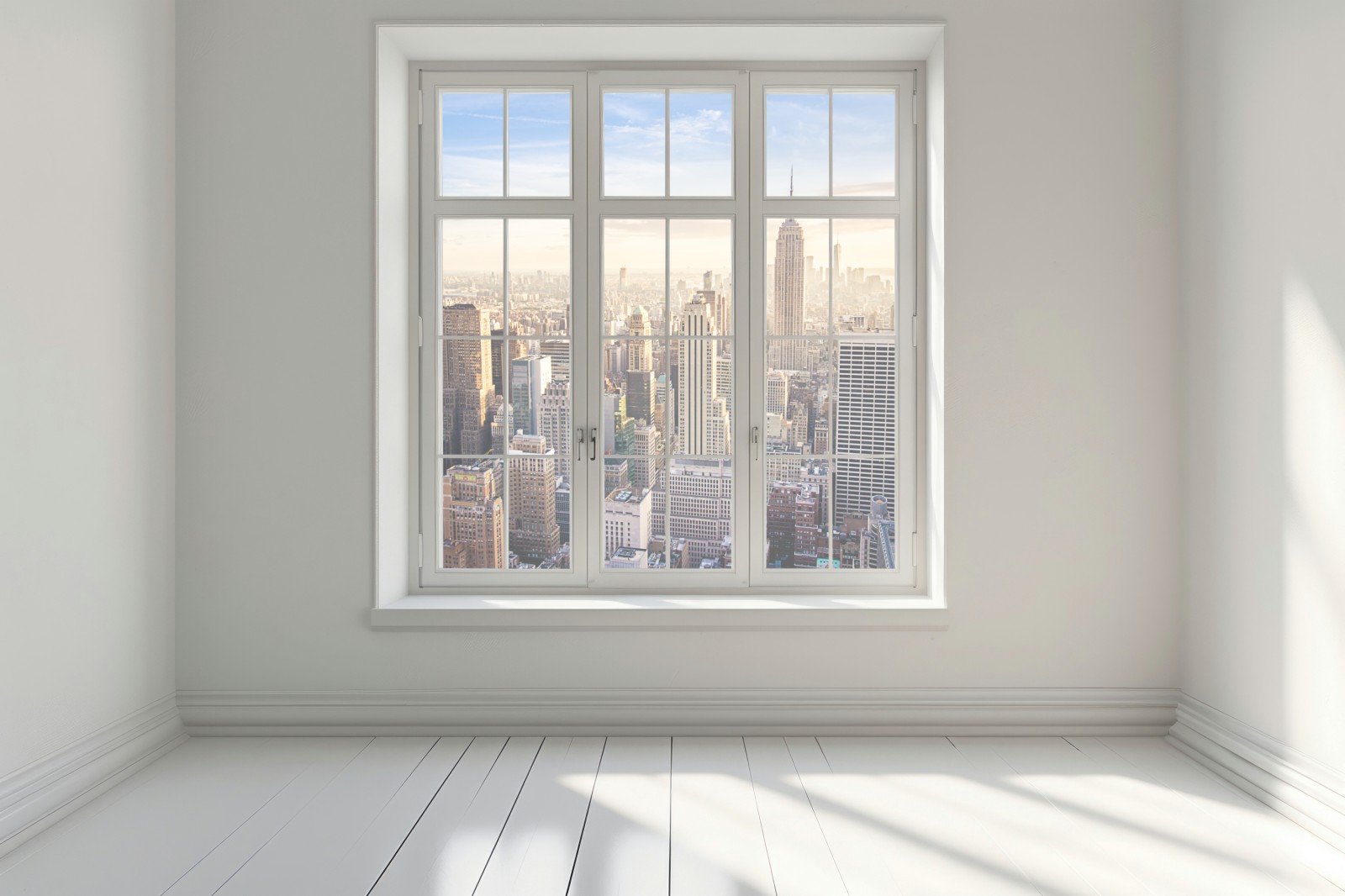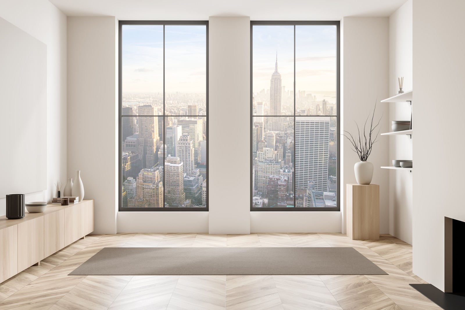 Beeindruckende Ansicht der New York Skyline im warmen Morgenlicht, perfekt um urbanes Flair in Ihren Raum zu bringen.