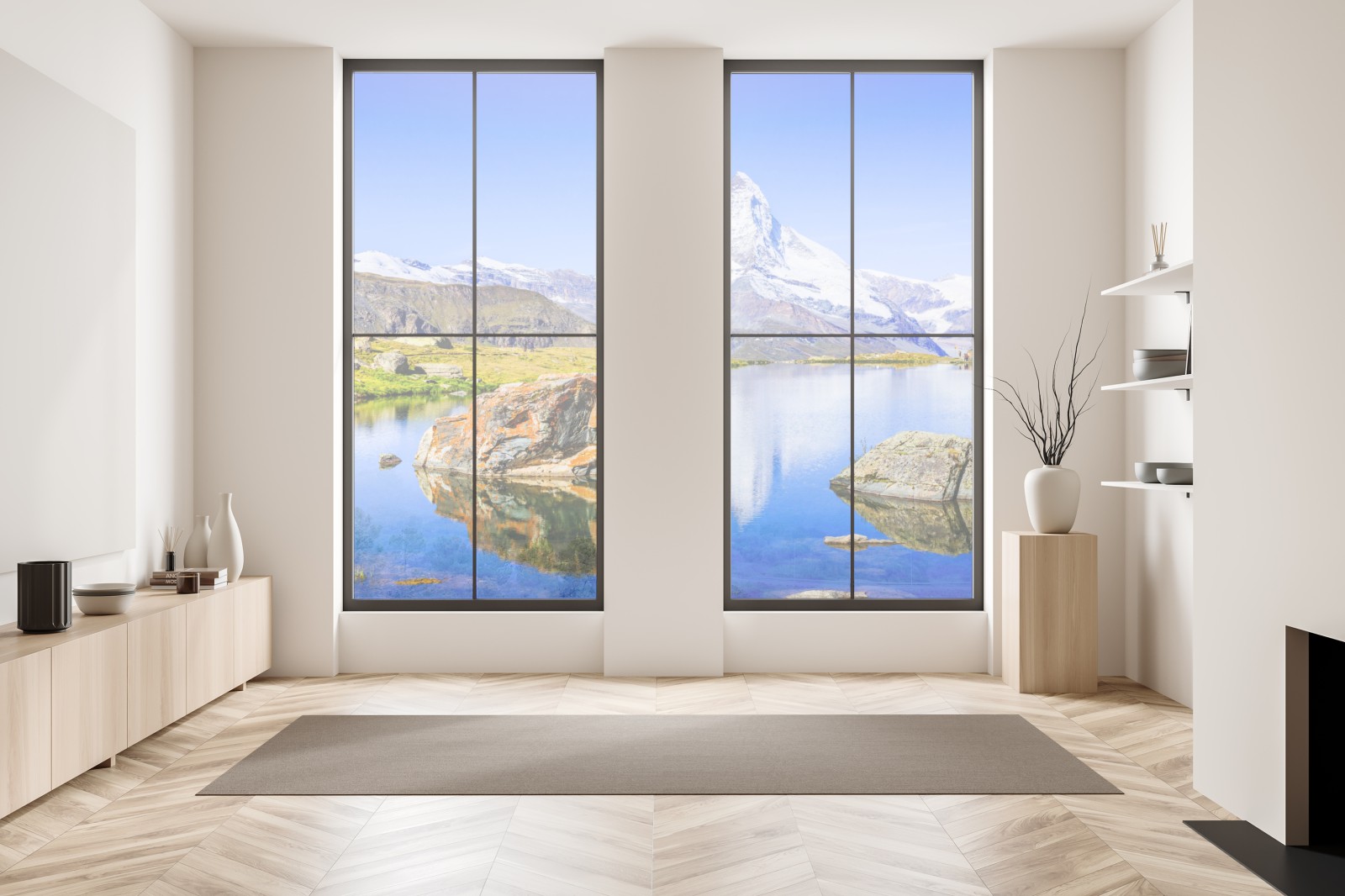 Ruhige alpine Szene mit dem im Stellisee gespiegelten Matterhorn, ideal, um bergige Gelassenheit in Ihr Zuhause zu bringen.