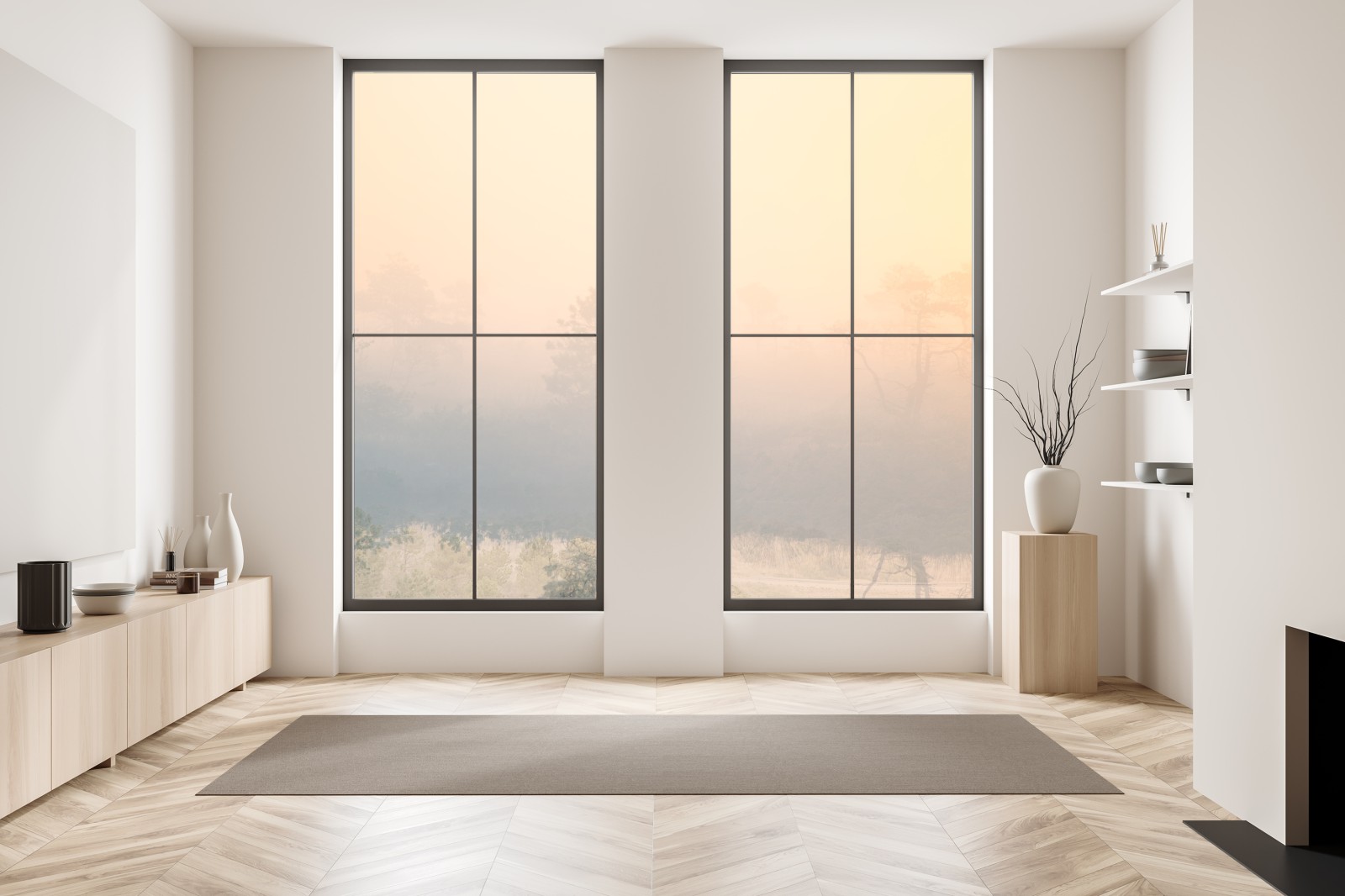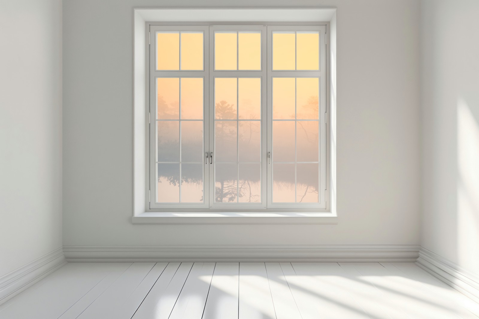 Fensteraufkleber träumerischer sonnenaufgang über nebligem moor