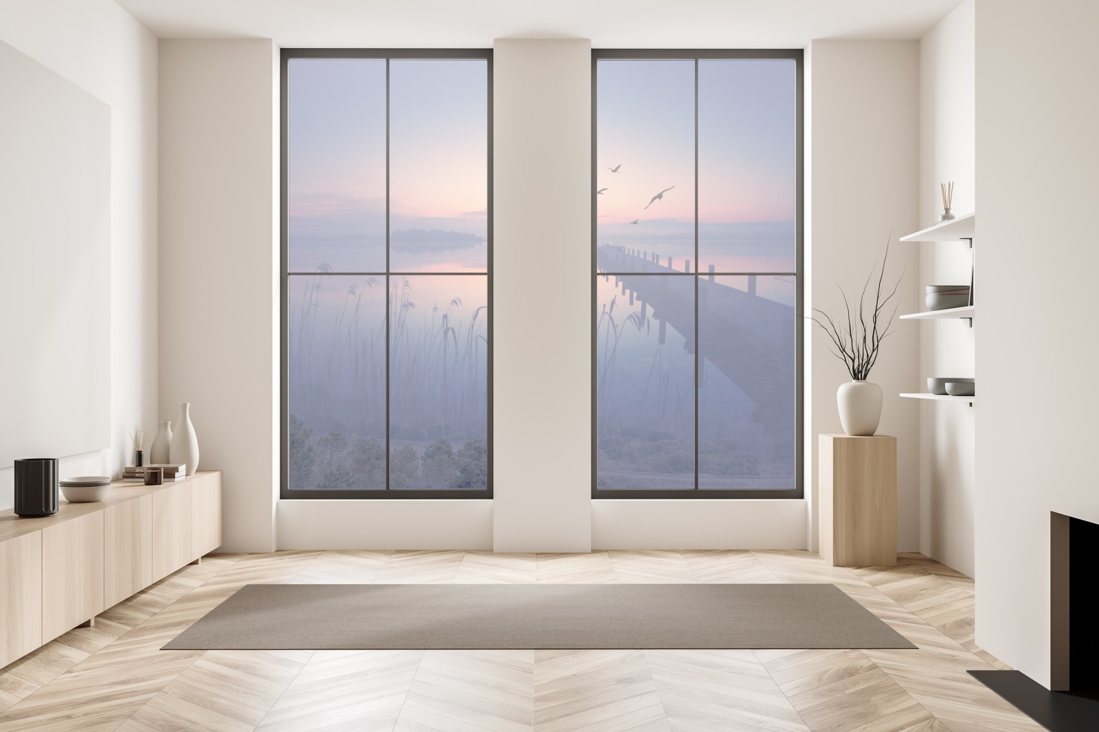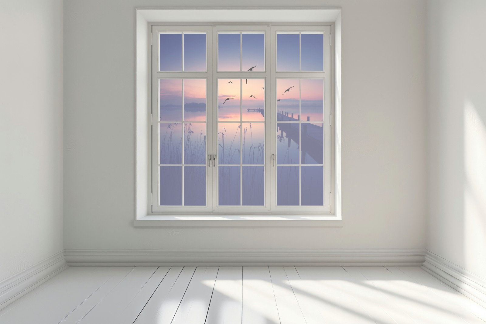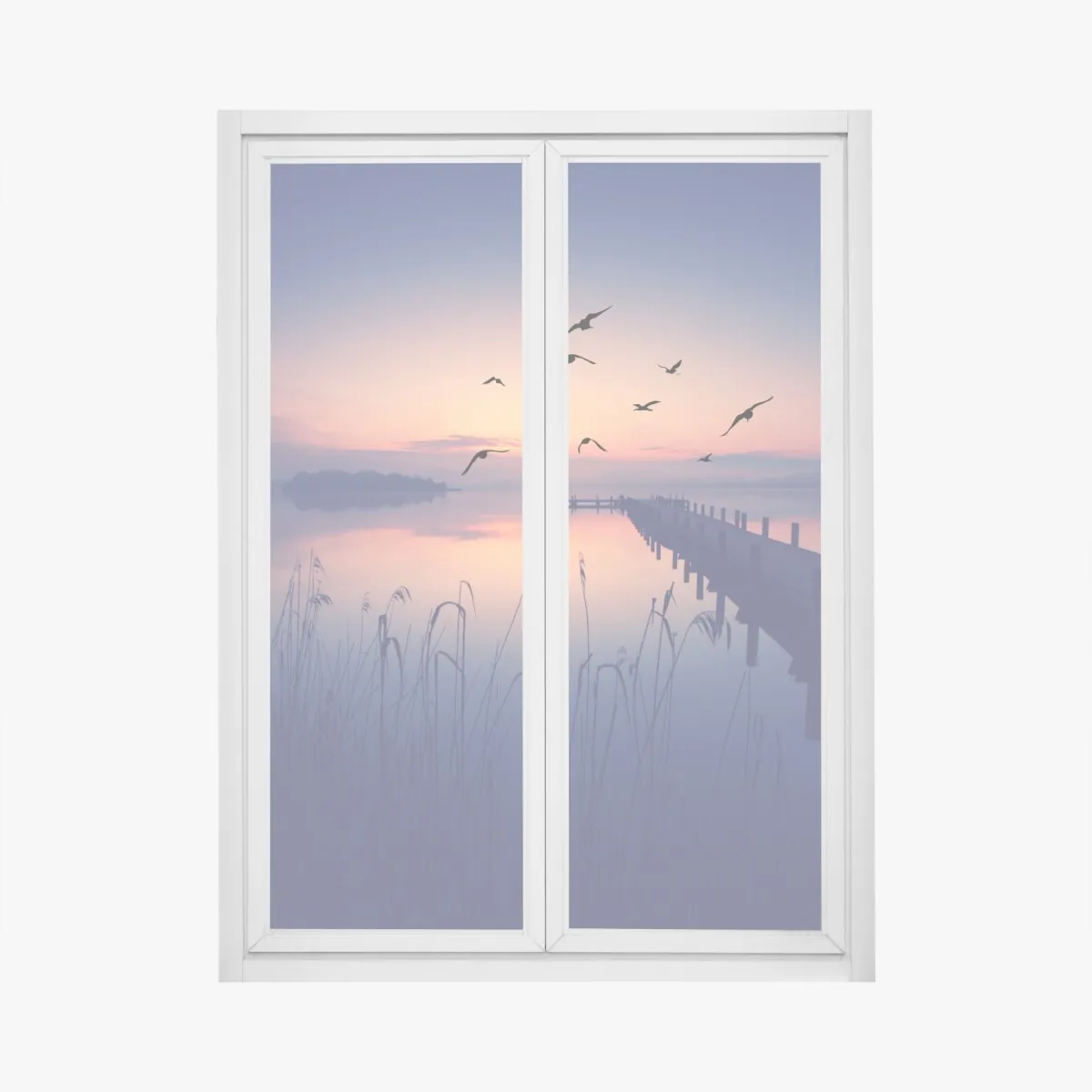 Fensteraufkleber ruhiger sonnenaufgang am see mit vögeln