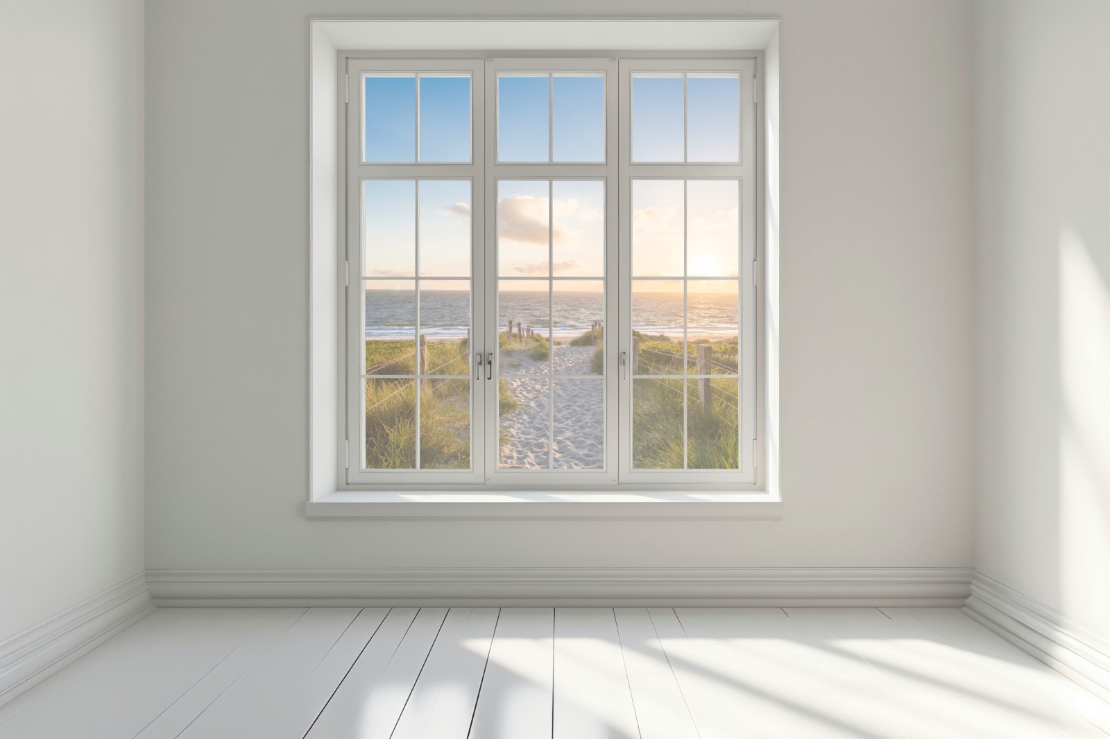 Fensteraufkleber sonnenbeschienener strandweg zum meer