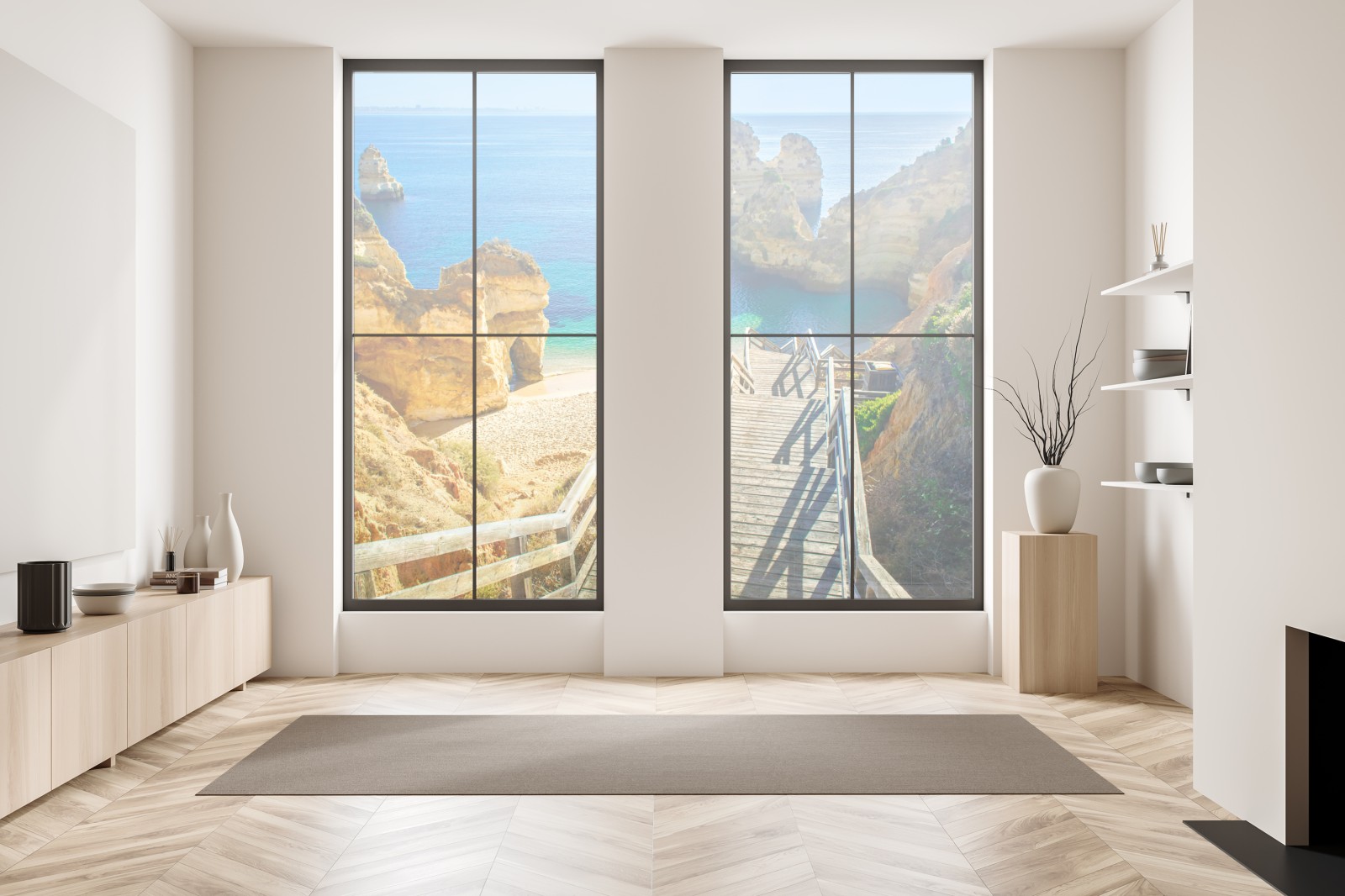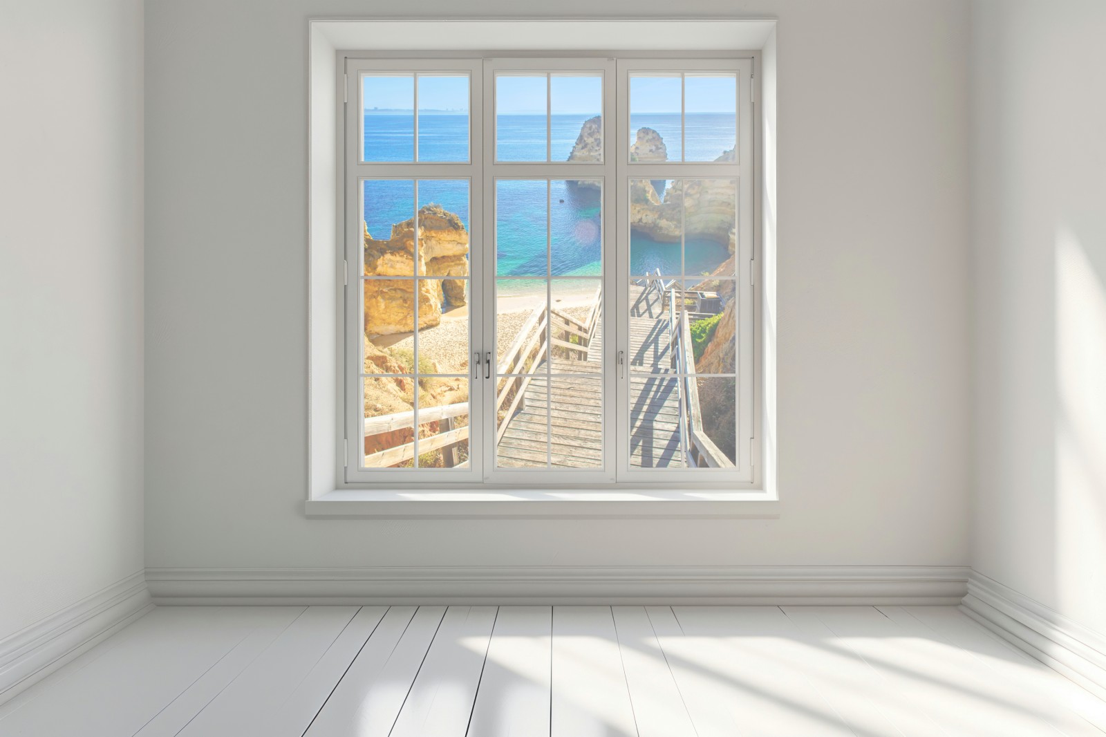 Fensteraufkleber sonnige treppe zur türkisfarbenen bucht